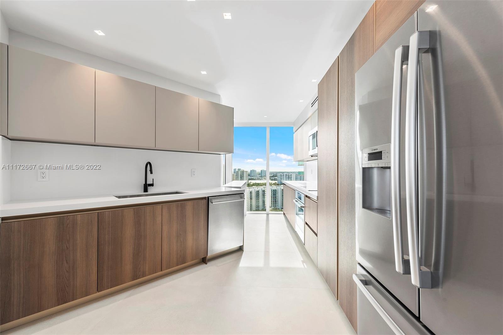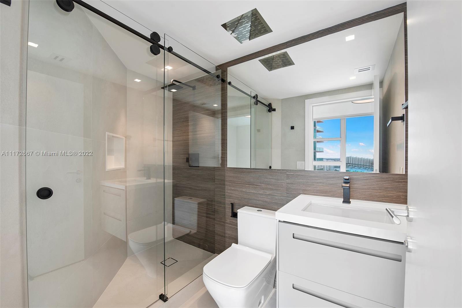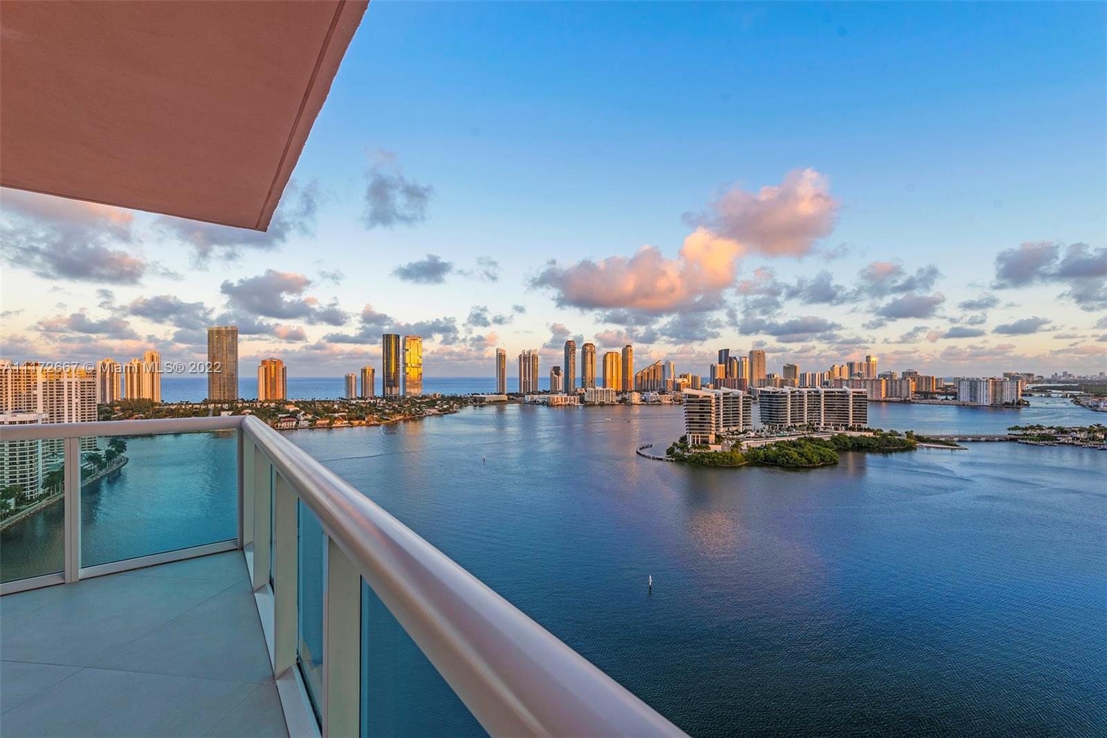 Stunning Hidden Bay “08” line apartment professionally designed/completed by 2id Interiors. Contemporary-style with high-end finishes. Fully automated lighting & motorized blinds throughout. Master suite w/bathtub, double vanity, and walk-in shower. The “08” line is the best line in the building w/total privacy & stunning SE views of the Intracoastal, Atlantic Ocean, & Skyline. Includes 2 parking spaces & storage unit.
