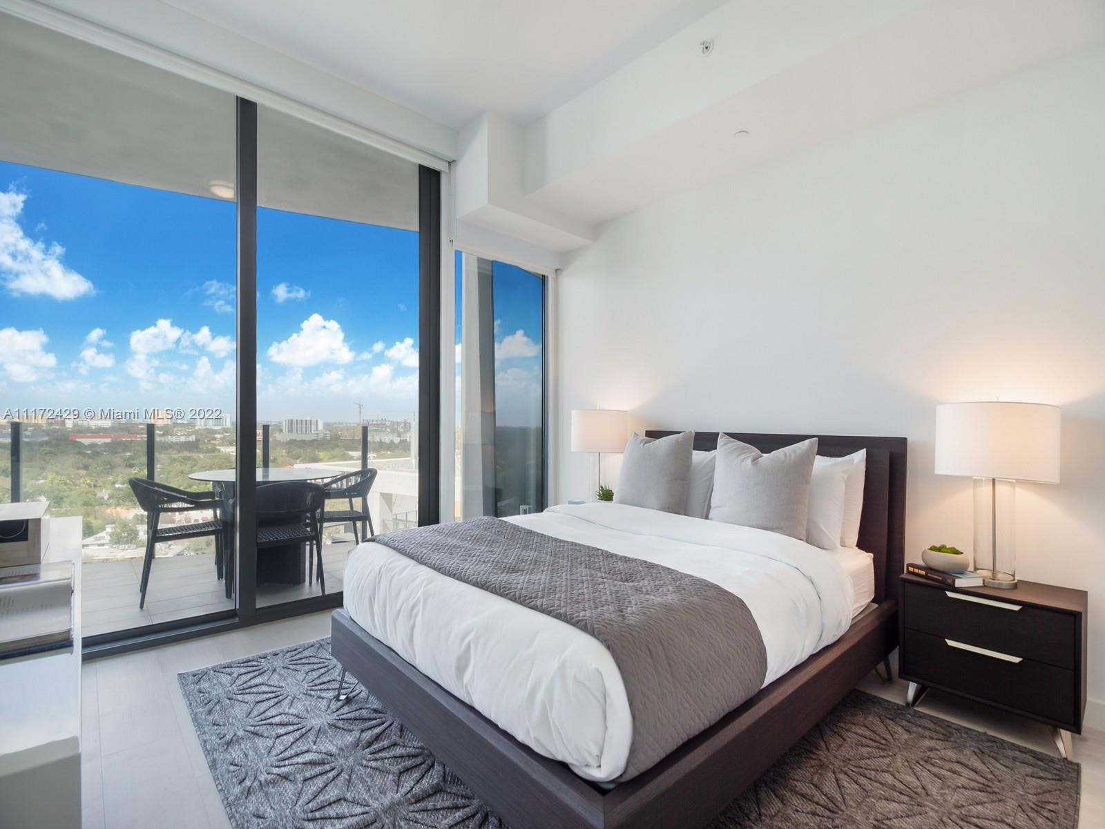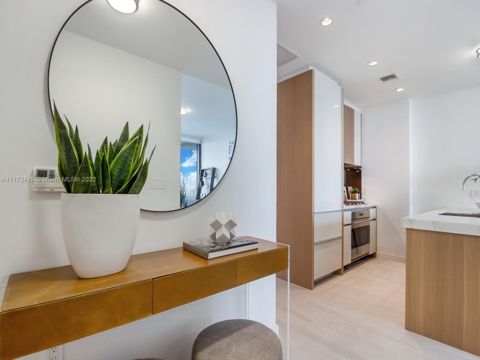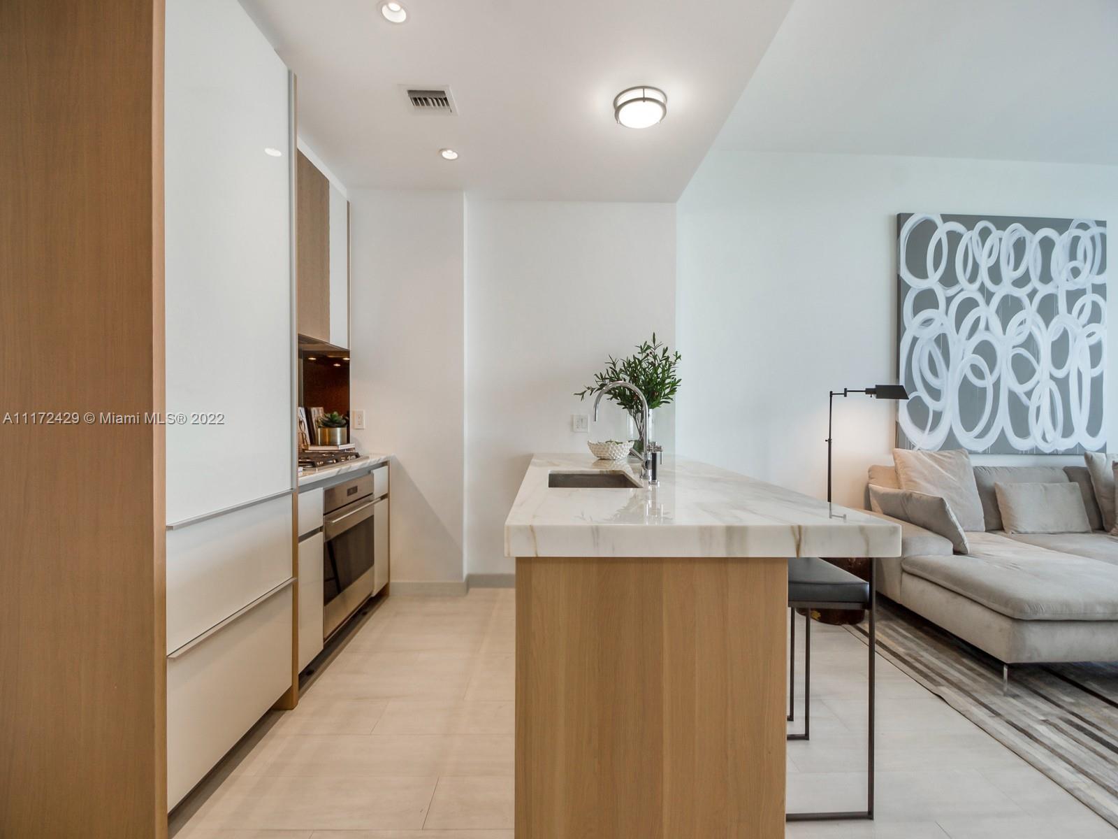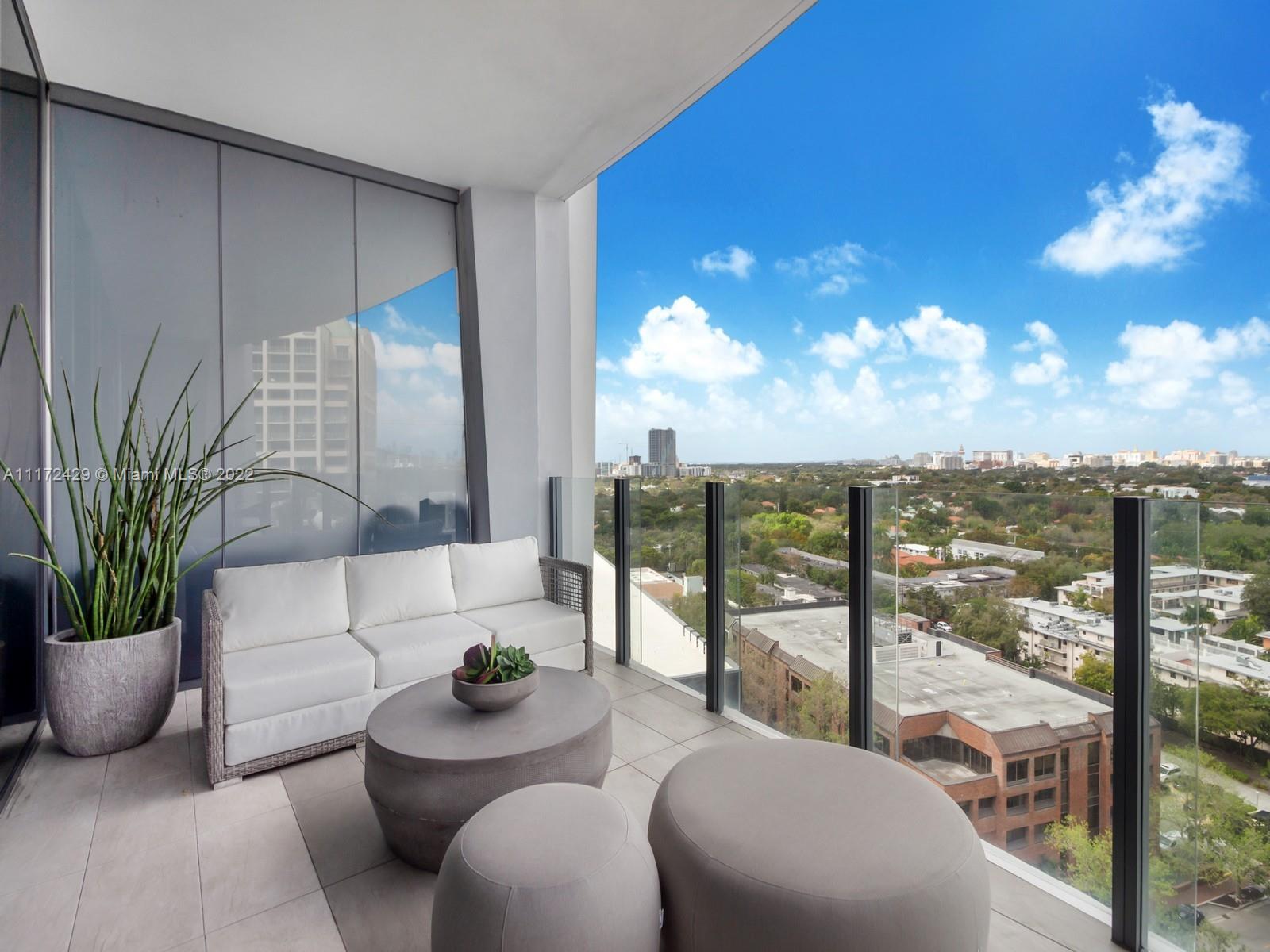 Elegant and sophisiticated 1 bed + Den Apt on high floor, bright with magical skylines views. Enjoy a diner w total privacy on the 220sft oversized terrace overlooking an unobstructed skyline. Apt features 10’ floor to ceiling impact glass panels, shades and blackouts installed, kitchen & bath by William Sofield, gourmet kitchen w island/bar, Wolf/Subzero appliances. Master bath w/double vanities and double shower heads. Private corner Master bedroom w/custom walk-in closet. Enjoy the den to accomodate a working space. Live in a luxurious but environmentally conscious design while enjoying world class amenities. Bayfront and roof top pools, 5 acres of private gardens, poolside café, butler service, aromatherapy steamrooms, private wine storage, screening room