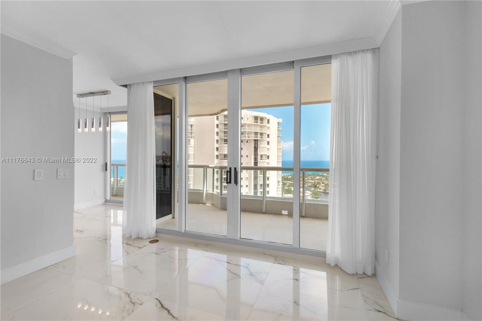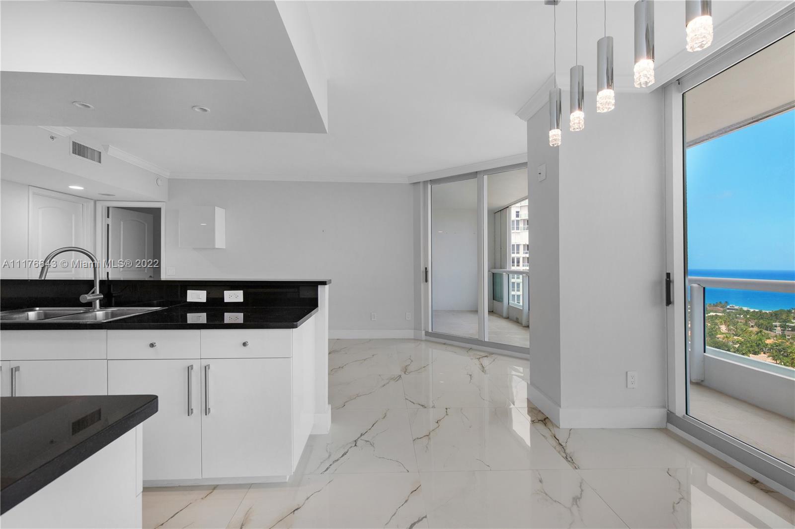 Enjoy gorgeous ocean front views & one of a kind sunrises from your balcony in this exquisitely updated CORNER unit. This spacious unit has a split floor plan including a den. Unit is in pristine shape, completely remodeled & has new cabinetry in the kitchen & laundry room w/ quartz countertops & extended tabletop kitchen with custom storage, new slide in oven with self clean & air fryer, new smart LG washer/dryer, electric shades in the master bedroom, new LED lighting in the laundry room & closets. Large format porcelain tile in the living area & bamboo wood floors in bedrooms. Building has undergone a complete renovation by interior designer Steven G. The point has exclusive amenities including: 3 pools, 4 tennis courts, newly remodeled spa & gym w/ fitness classes, beauty salon & cafe.