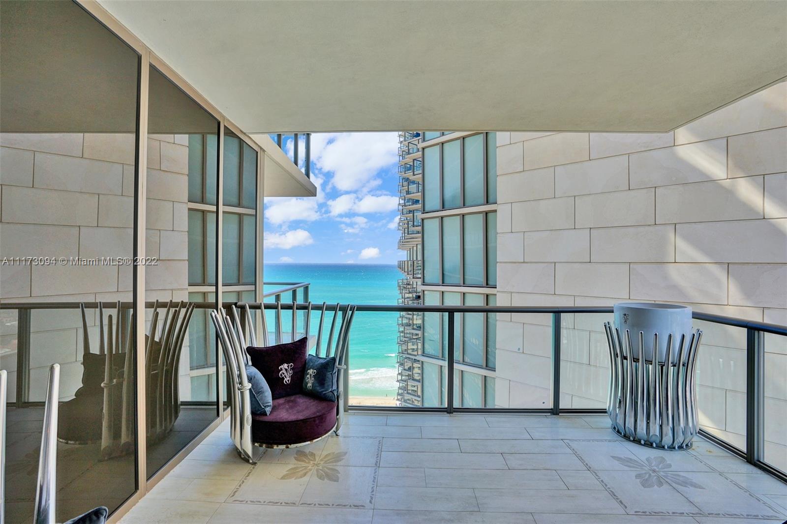 Gorgeous spacious unit with direct ocean and city views, 3 bdr + DEN/3.5bth in St Regis, Bal Harbour. Very spacious and large unit features sleek floors, pearlescent venetian stucco throughout, drop ceilings, customized lighting, high-tech built-in appliances. Enjoy the ocean and bay/city skyline views. Every room in a unit was designed to perfection by famous designer Roberto Cavalli and was also beautifully furnished with Visionaries Furniture, created by Cavalli. Living at its finest, St. Regis offers 5-Star resort amenities with a 24 hour concierge and room service, private oceanfront cabanas, separate residents amenities, full service spa, 4 pools, three restaurants and more.