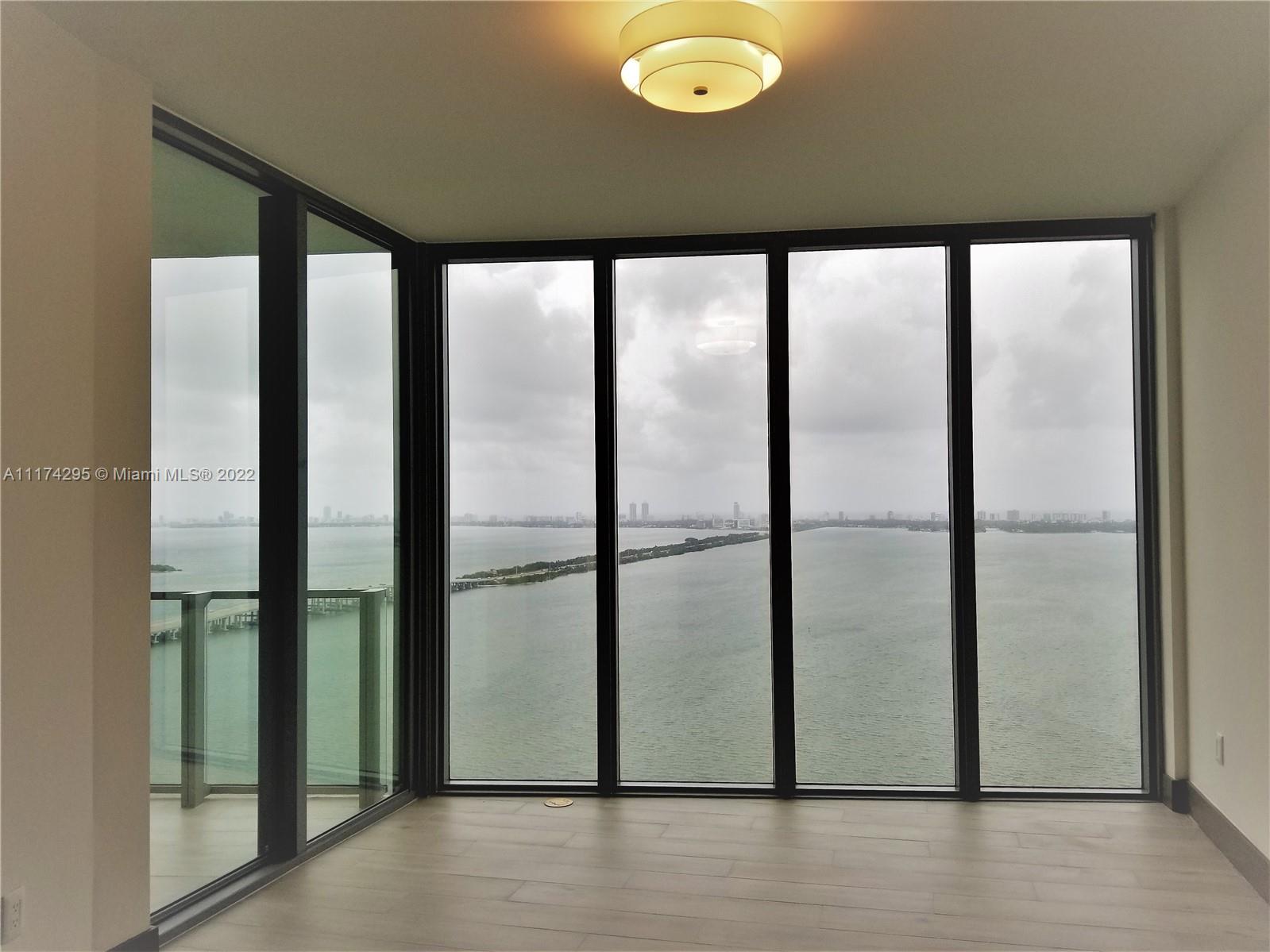 Stunning condo with endless water views on 33 floor in luxurious Biscayne Beach in Edgewater. Corner north/east 3 bedrooms + den with floor to ceiling glass windows directly on wide bay. Private elevator, foyer, 10 ft ceiling, 4 baths & 2 balconies with gorgeous views from every room. Luxury finishes including porcelain tile floors w/wood finish, electric window coverings throughout, Miele kitchen appliances, custom European closets, floating vanities, lid mirrors, custom Italian Bertolotto doors. Large washer & dryer. Garage parking. Luxury amenities include beach club, 2 pools, spa, cabanas, water view fitness center, tennis courts, steam & sauna. Bayfront and right in the heart of Wynwood, Midtown and the Design District.