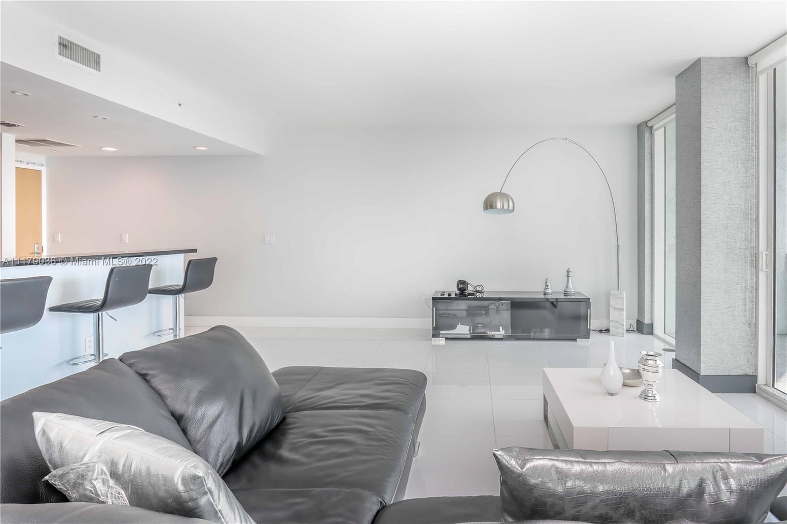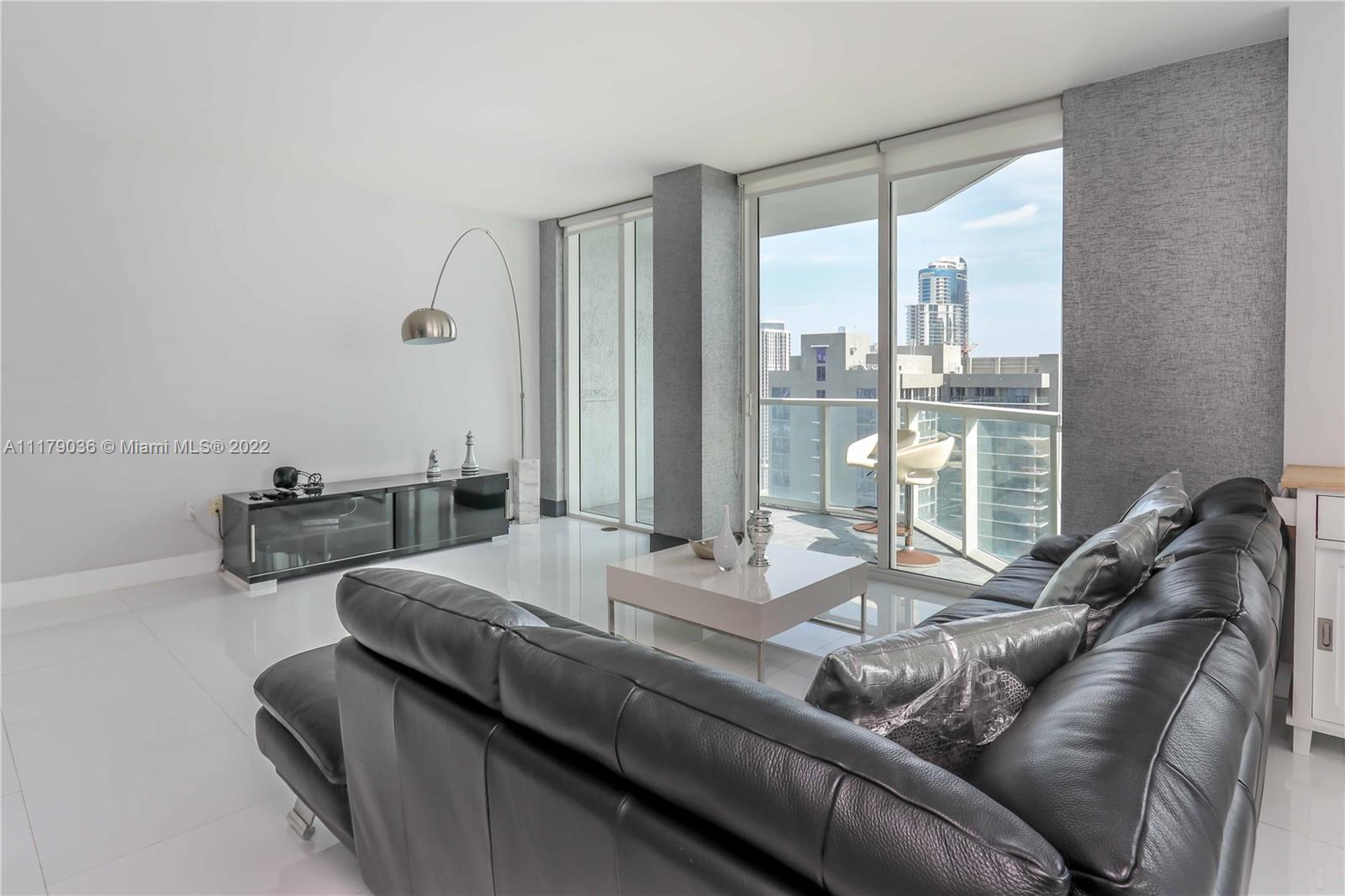 Large corner unit 2 bedroom + DEN at Vizcayne South. The den can be used as a 3rd bedroom, office, home theater or play room. This unit has white porcelain tile floors throughout, direct east and north views, two spacious balconies and large rooms with walk in closets. Vizcayne is located in the heart of Downtown Miami and offers 5 star level amenities with four swimming pools, hot tub, state of the art fitness center, steam-room, sauna and much more. Offered fully furnished. Unit is tenant occupied until July 31, 2022.