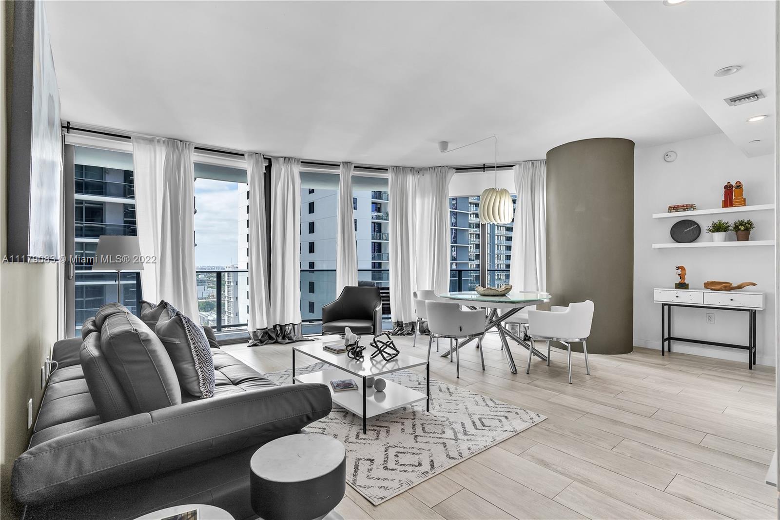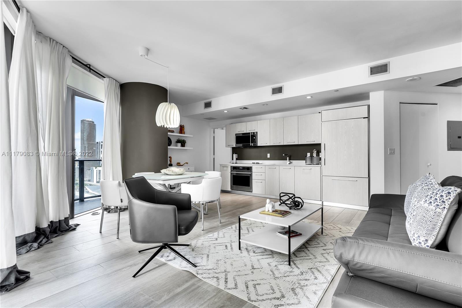 On the heart of Brickell 2 bedrooms - 2 baths. 1 valet parking , porcelain tile wood plank flooring throughout. SS upgraded appliances. Amenity rich lifestyle roof top pools and lounging areas! Truly progressive Rockwell Interiors. Landmark Arquitectonica design. 3 POOLS IN THE BUILDING: roof top pool +7 floor Pool +gym pool, Aquitectonica design, surrounded by the best restaurants and Brickell shopping center, residents lounge, kids room, media room (cinema).