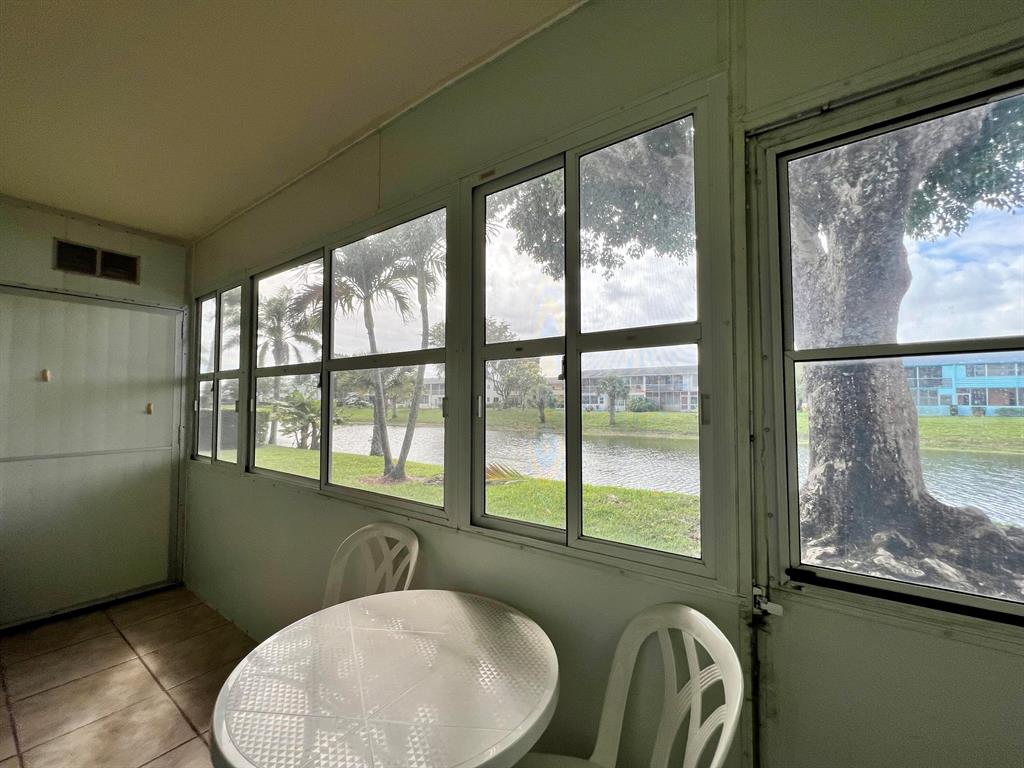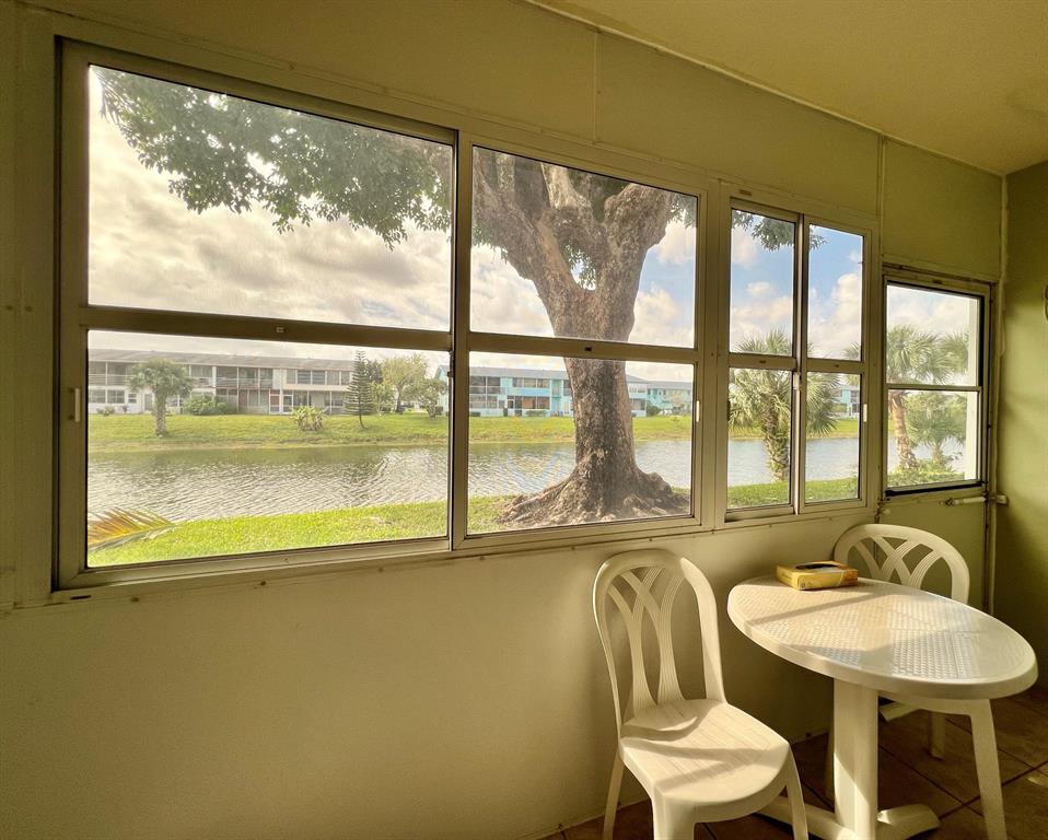 Beautifully maintained and updated FIRST FLOOR water view condo in 55+ Century Village! Updated kitchen & baths. Hurricane Impact Windows, Impact Slider, and Accordion Shutters. Neutral tile in living area. Updated kitchen with neutral tile floors, white cabinets, resurfaced ceiling, and newer white appliances. Spacious bedroom suite with updated full ensuite bath, wall of closets, and access to enclosed lanai. Enjoy pretty views of the canal and green space from the enclosed lanai. Sold AS IS and Furnished. Great location close to the Kent pool. Century Village is a 55+ community with so much to offer...