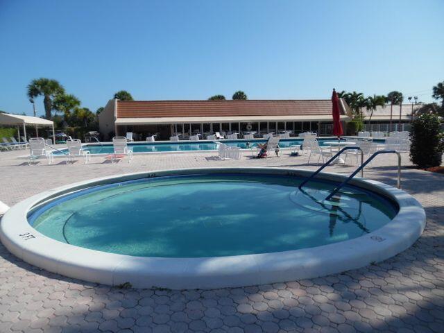 Location, location, location. Lake Constance Dr. is a desirable location within Golden Lakes! This furnished, 1 BR, 1 1/2 bath is just waiting for you to put your stamp on it and make it your own. It has a gorgeous lake view with stunning sunsets, is steps from a heated pool, and is located right by the east gate for quick entrance and exits. There is a green belt (soon to be a dog park) view from the front porch. Younger people can reside in here (18 and older), as long as one person on the deed is age 55 or older. The modest HOA fee covers cable tv, wifi, water, roof maint., exterior maint. exterior insurance, grounds keeping, and the expense of a manned, gated community. Pick up trucks OK, For $100 yearly, work trucks can park in lot by clubhouse. Pet friendly!