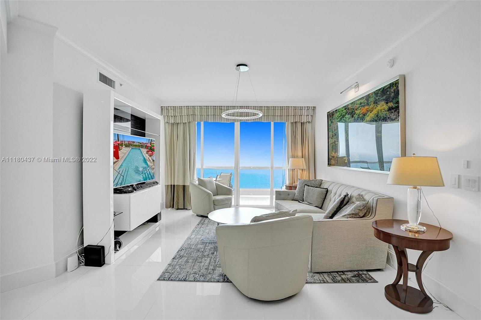 BEACHFRONT! Rarely available 04 model, perfectly situated on the 35th floor at the prized Acqualina Resort & Residences delivers quintessentially elevated living par excellence. This abundantly beautiful refuge in the sky affords a feast for the senses w/ breathtaking ocean, bay & skyline views at every turn. Completely turnkey, the home comes well-appointed w/ everything from a semi-private foyer entry, 2 tantalizing balconies, oversized white porcelain tile flooring w/ mosaic details, light-filled kitchen & bathrooms, quartz countertops, Miele/Subzero appliances, gas range, & professionally selected furnishings. With access to impeccable facilities & a truly divine location, residents enjoy the finest heights of luxurious living. Spa, restaurants, like IL MULINO & MORE.