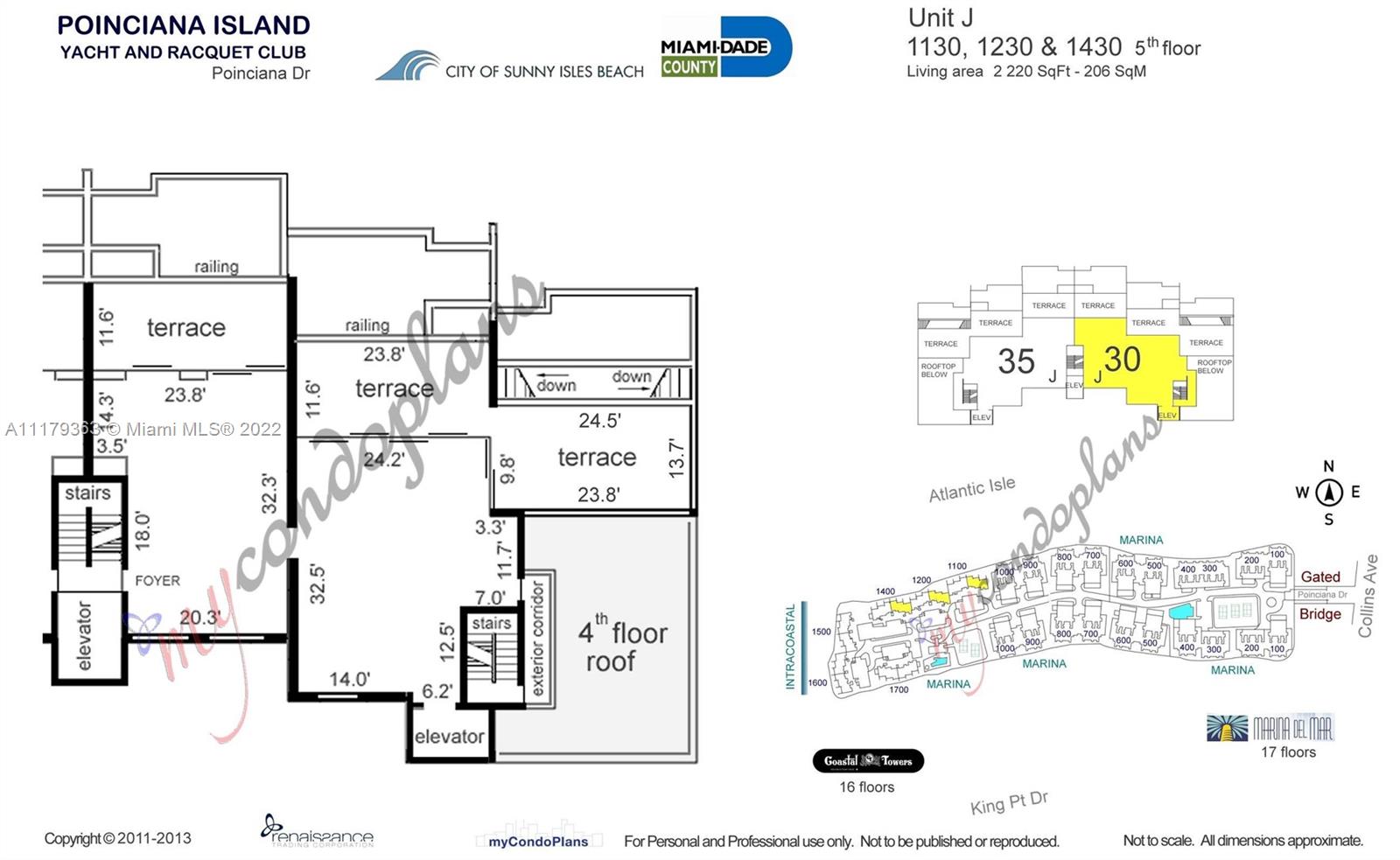 Great opportunity to get a spectacular PENTHOUSE in PRIVATE Poinciana Island in beautiful Sunny Isles Beach, perfectly located between Miami Beach and Golden Beach. Corner unit with a view of the ocean 2 bed / 2.5 baths with 3 terraces (1st is 276 SQFT, 2nd is 276 SQFT & 3rd is 336 SQFT), amazing views, very private and 2,220 SQFT for less than $1M! Semi-private elevator opens directly into the unit. Close to the Beach and A rated schools nearby. Poinciana Island is a private guarded island with only 190 units and a clubhouse, 4 tennis courts, 2 pools, a basketball court and a gym. The condominium has assessed for the 40yrs certification and is also redoing the boardwalk, the gym & many other projects. 1 covered parking & pets allowed. Showings will start March 28.