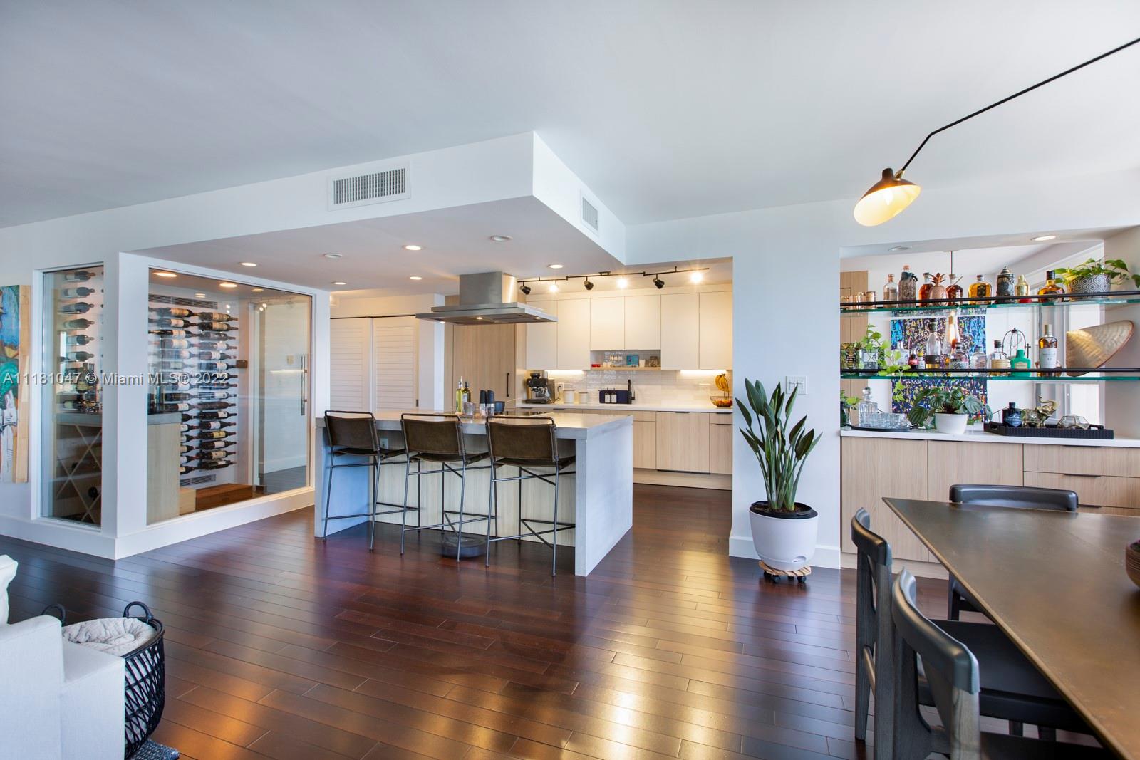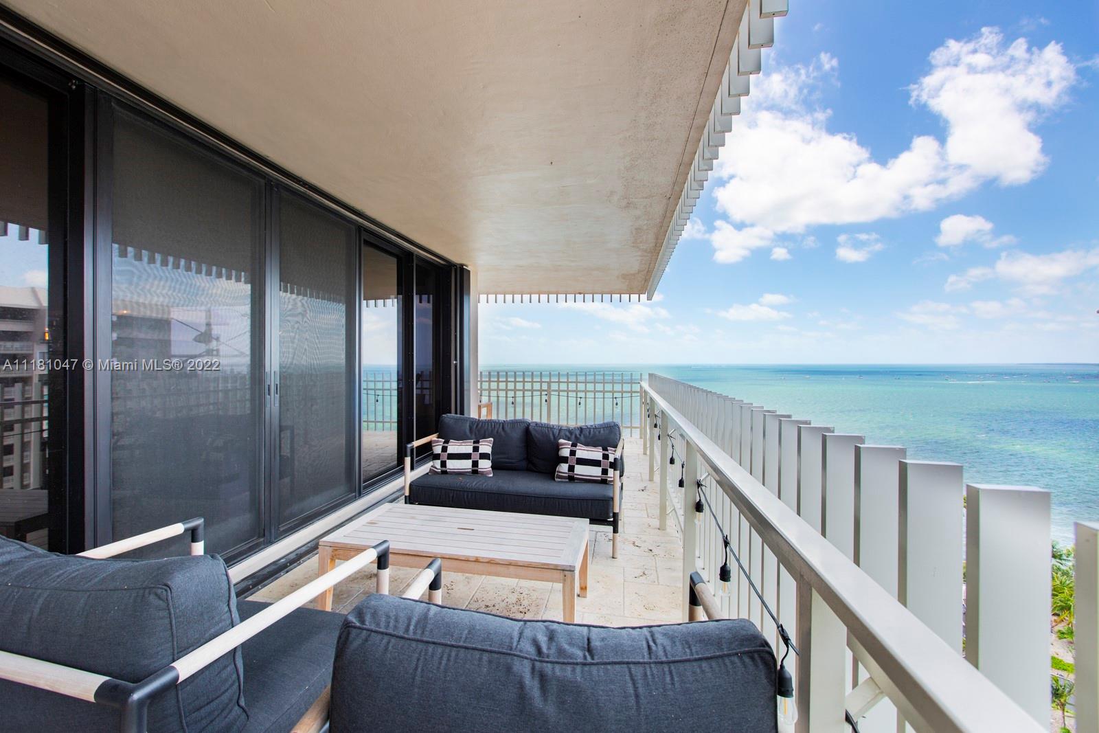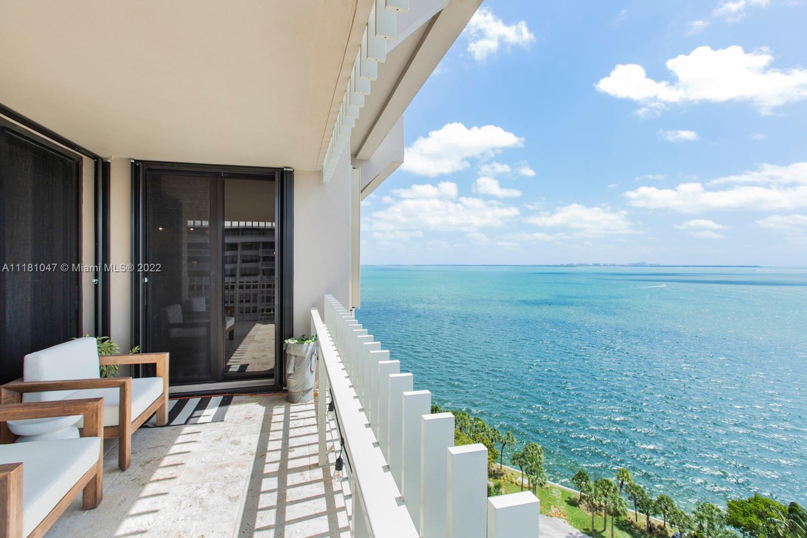 This rarely available corner unit on a private island has a wide wrap-around balcony with unobstructed ocean views. The large 2,398 sqft has an updated living space, new top-of-the-line appliances, a walk-in wine cellar, and a spacious master bedroom. Enjoy stunning views of Biscayne Bay, the Coconut Grove marina, and more from the comfort of your living room or while cooking in your open kitchen. Grove Isle is a 20-acre private island offering first class services, including 24-hour security, valet, and on-site management. Live a secluded paradise-island lifestyle, while still being a 10 minute drive to Brickell and Downtown Miami, and less than 5 minutes to Coconut Grove’s amazing restaurants and retail shops. This unique unit is a truly special place to call home.