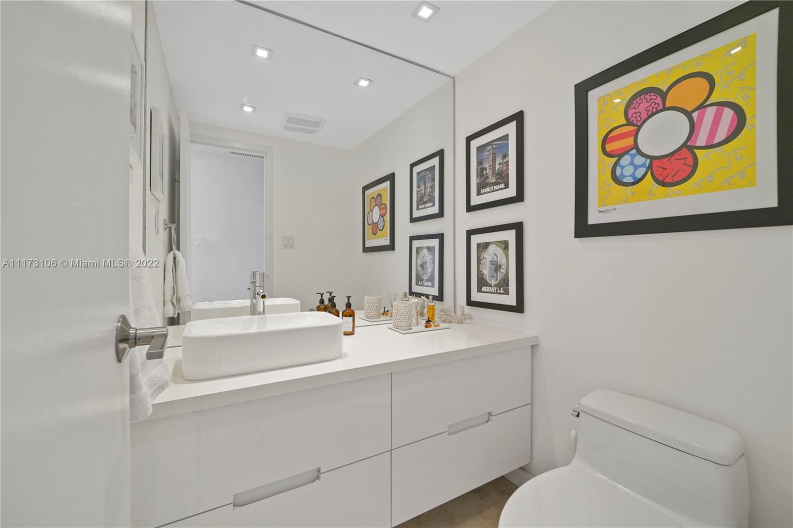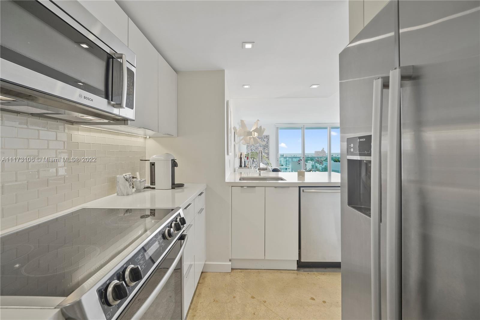 Located in the heart of South Beach, this is an impeccably renovated and rarely available large 1 bedroom 1.5 bath corner unit w/stunning views of Miami Beach. The unit is move-in ready with polished concrete flooring throughout, an open concept kitchen w/custom cabinetry and Bosch appliances, upgraded lighting and all new impact windows and doors for a light and bright space. Two Walk-in closets with shelving designed to maximize space. Fully remodeled bathroom and half-bath with floating vanities, and top of the line fixtures. One deeded parking spot. Mirador is a full-service building with valet parking, heated pool, sauna, jacuzzi, convenience store, 24h security, spa, & a state-of-the-art fitness center. Fiber optic Internet and Cable all included in monthly H.O.A.