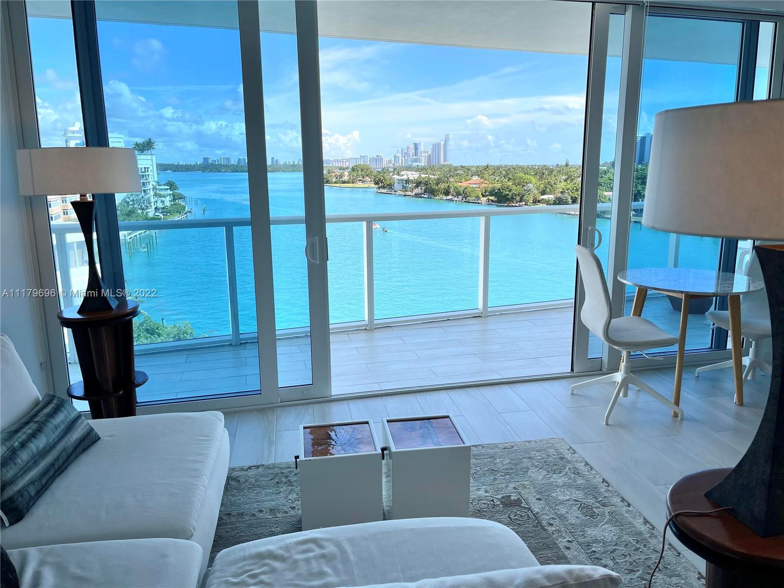 BUILDING directly on the bay in BAY HARBOR ISLANDS. Fantastic open bay views from master bedroom, living room and open kitchen. Real wow factor! The 2 bedroom 2 bath comes with Viking appliances quartz counter tops & washer and dryer. The floors are beach wood porcelain including the 200 sq/ft balcony. Building features Boat dock for pickup, large gym, 2 pools (east & west), sauna and security, 2 assigned parking and storage. Blackout shades in the bedrooms. Close to the beach, Bal Harbour Shops, Surfside shops & restaurants.