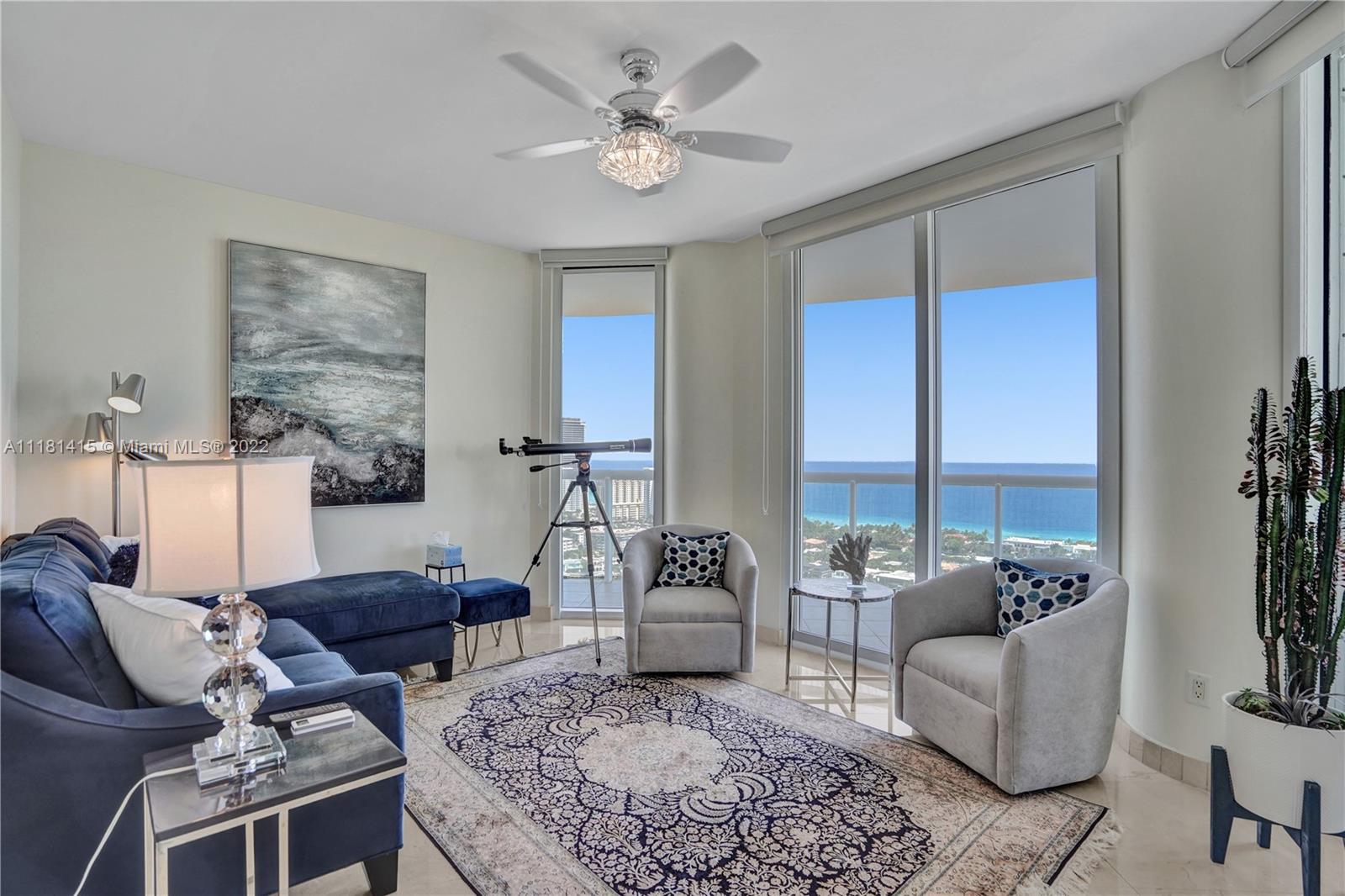 The best Northeast corner in the complex! Spacious floor plan, 3 bedrooms 3,5 baths in one of the most exclusive addresses in Aventura. Totally unobstructed vibrant views from floor to ceiling windows and filled with sunlight. Wrap around balcony with panoramic ocean and city views. Private elevator. Marble floors in living areas and carpet in the bedrooms. Motorized blinds, built ins, huge closets and lots of storage space. All amenities included in maintenance: spa & fitness center, 3 pools, tennis courts, BBQ area & kids playground. Resort lifestyle. Outdoor café, hair salon. Walking distance to restaurants and shops.