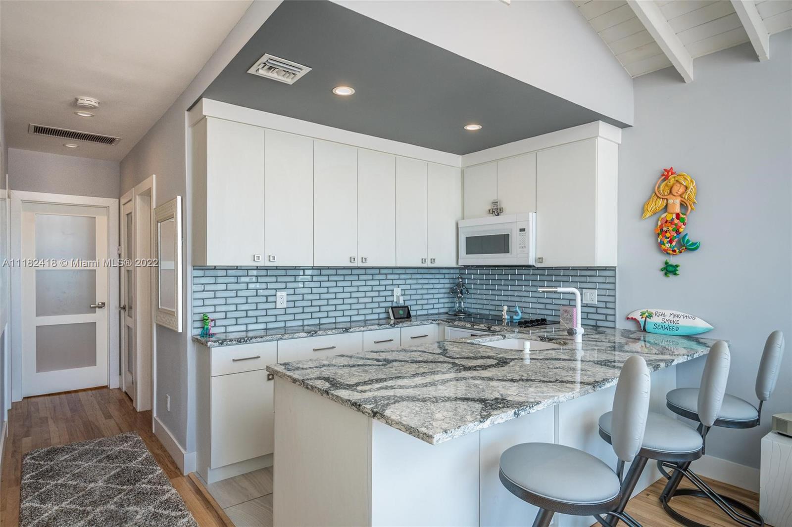 This rarely available corner unit in boutique 7-unit building along the Hollywood Beach Broadwalk, is the perfect beach getaway. From the second you step through the front door you’re mesmerized by the ocean views. No detail has been overlooked in this professionally decorated 1 bed/1 bath condo. Vaulted wood finished ceiling. Wood and tile flooring. Impact glass throughout. Washer/Dryer. Updated summer kitchen for the common area. Reserved parking. You can rent 3 times a year with one month minimum.