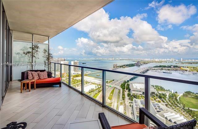 Breathtaking views await you from this 1,557 S.F. custom finished 2/2.5 at Marquis Residences Miami. From the moment you step off of the elevator directly into this stunning custom finished foyer you know you have arrived. This unit is finished with porcelain wood flooring throughout, even onto the terrace. Custom baths each finished with its own style and personality even the half bath. Custom lighting fixtures, custom closets and more. All of this perched atop Marquis Residences with stunning common areas including a new spa, newly equipped gym, sunrise lap pool and a afternoon pool with two Jacuzzis' with a poolside restaurant and bar and more. One assigned parking spot, and a full service luxury building. Search no more, this is the one you were waiting for!!