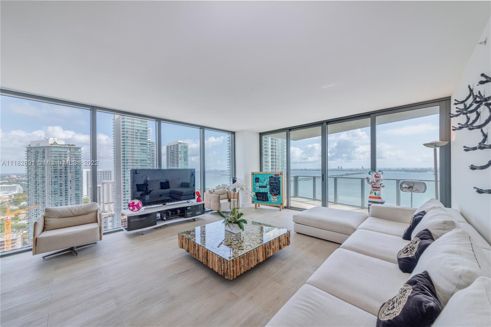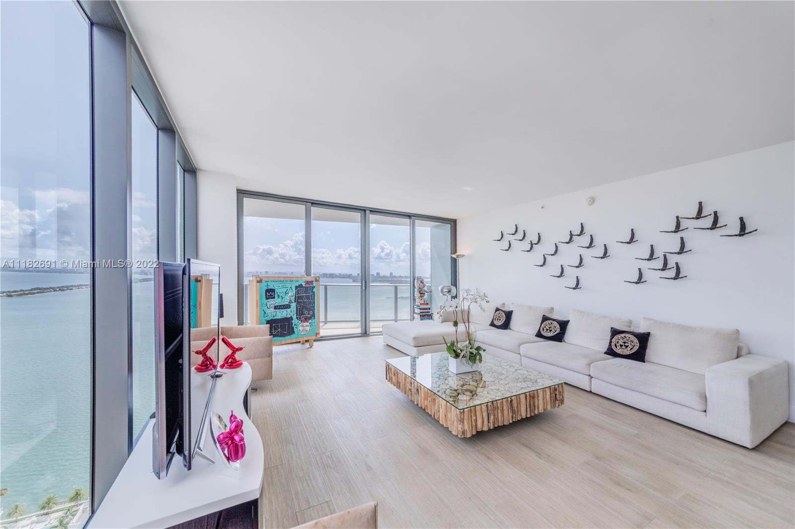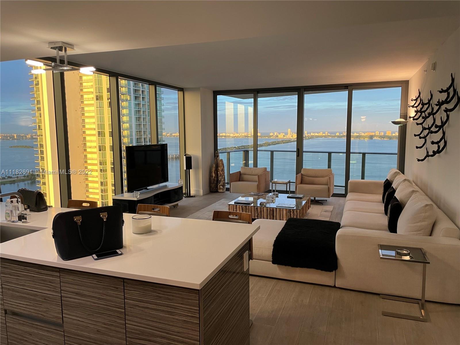 Welcome to Icon Bay, the best value in Edgewater. Unit 3701 is a spacious, stunning corner unit, with 2 bedrooms and a Den, perfect for a home office. This is a flow-through unit that offers spectacular direct bay and ocean views, as well as sunset views from the master bedroom balcony. This residence is offered fully furnished and decorated, and includes many upgrades such as Italian porcelanato floors, new AC unit, motorized shades and blackouts. The building has 2 tennis courts, state of the art gym, sauna, theatre room and infinity pool facing Biscayne Bay. Call listing agent for an appointment.