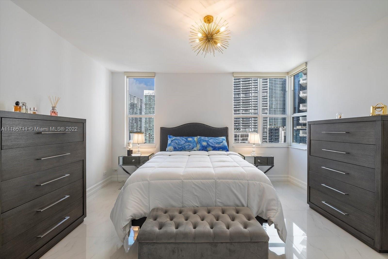 Wonderful Brickell living in Brickell Key! Beautifully modern designed 2 bed/2.5 bathroom located in Courvoisier Courts. This corner unit features both city + water views. The units boasts over 1,200 sqft with an open balcony to appreciate the views. Interior includes white cabinetry, custom closets, marble tops, bar, stainless steel appliances, white porcelain tiles, and the bathrooms feature beautiful vanities + rain showers. Undeniably one of the most impressive units in the building. Along with the unit, the complex offers an amazing lifestyle with amenities that include a pool, jogging/ walking path, billiard room, children's playroom, gym, valet and much more!