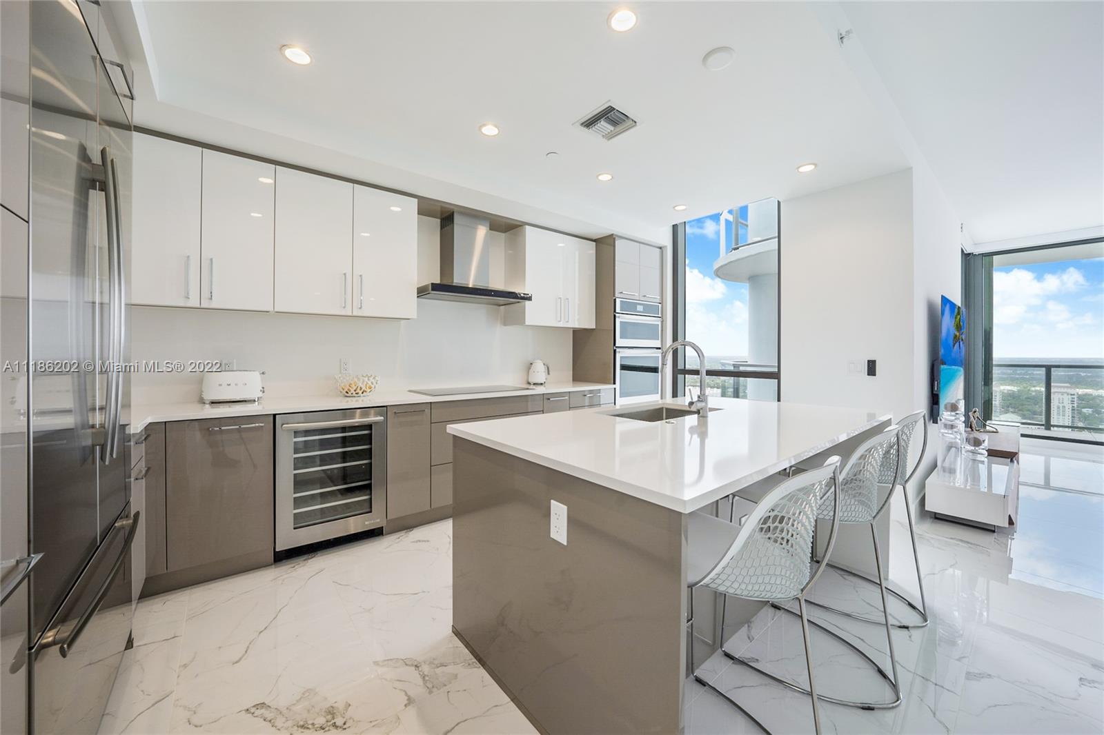 Modern design Flow-thru Developer Model residence at the newest Las Olas high-rise offering the highest upgrades including Italian kitchen cabinets, quartz countertops, motorized window shades, Statuario venato porcelain tile floor throughout. 2Bedrooms+Bright and Spacious Den that can serve as a 3rd bedroom, 3 full Baths. Floor-to-ceiling glass windows, capturing Sunset over the River&Sunrise views over the ocean. 2 Terraces with glass railing designed to expand living spaces. Full laundry room, 2 Interior Low floor Adjacent parking spaces, Storage room on the same floor. Surrounded by art, culture&fine dining. Resort -style amenities incl. pool, tropical outdoor entertainment area, BBQ grills, club room&fitness center. Hyatt branded hotel offers guest rooms for the comfort of your guests