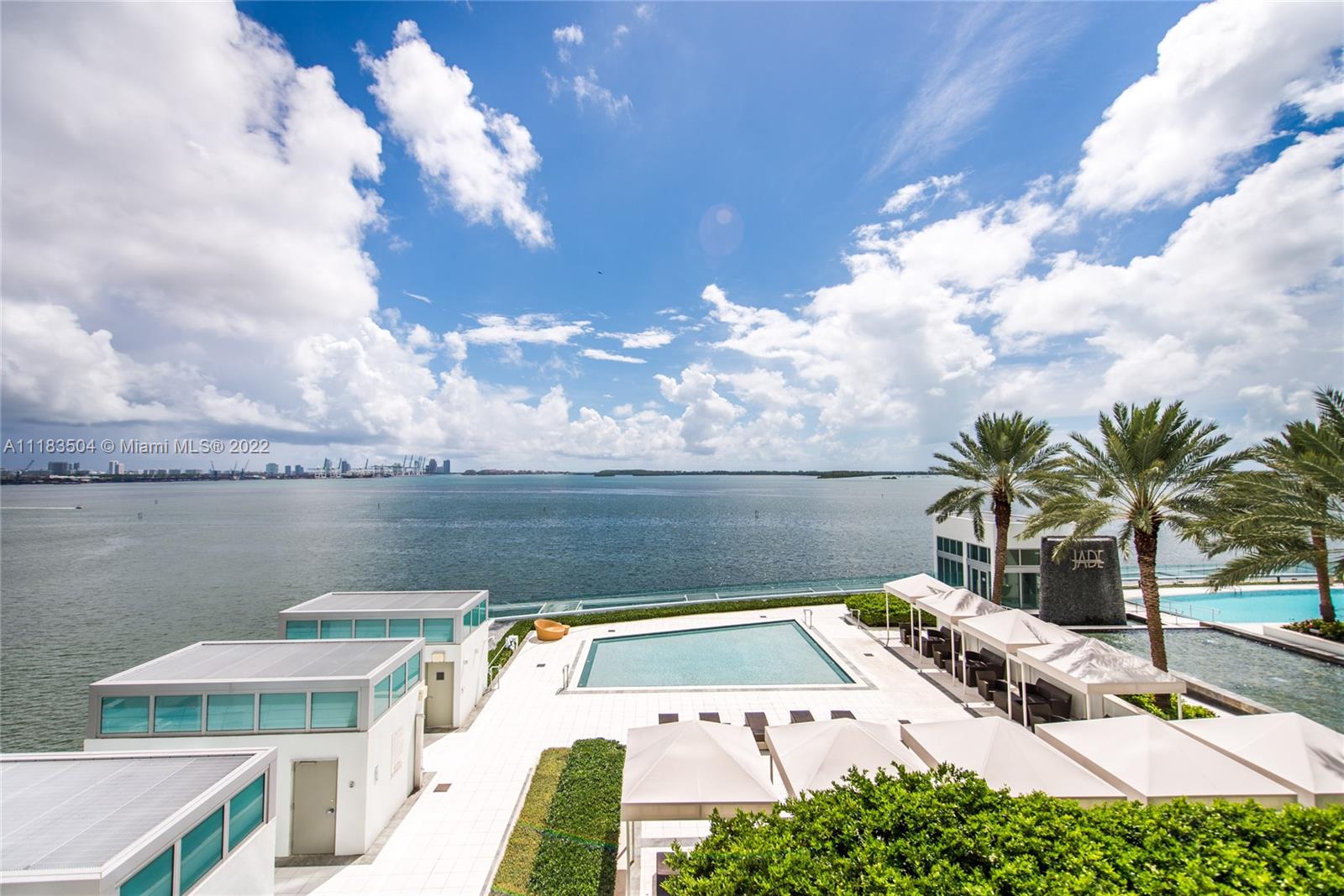 Jade at Brickell desirable 1208 SW corner, offers both espectacular Bay and City views. Extra large balconies and floor to ceiling glass walls allow the sun to play on its living area all the time. Two bedrooms and 2 bathrooms split plan, private foyer and elevator, all over 1526 SF. Floors feature gray marble, the kitchen is open with Italian cabinets and stainless steel appliances. Jade is an iconic building offering great amenities such as infinity edge pool w/cabana service, complete spa and fitness center, racquet ball, 24hr concierge and so much more. Perfect Miami lifestyle!