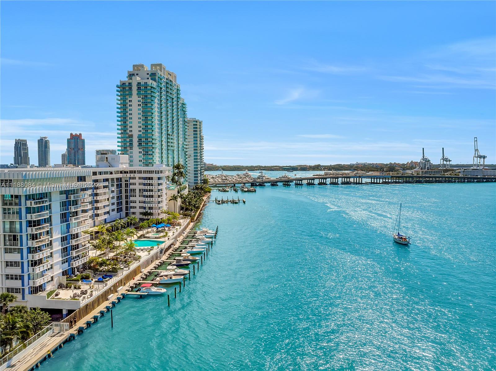 One of THE nicest 1/1's on West Ave.Direct bay view overlooking Star Island,the port,& the stunning city lights of the Miami skyline.Beautifully finished,fantastic layout,large balcony,huge custom closet w/ vanity/desk.Among THE best views & locations SoBe has to offer.Walk Score is a 10!Each day ends with a spectacular sunset view.Both the LR & BR have floor to ceiling impact glass sliding doors providing tons of natural light.Gorgeous white quartz & stainless kitchen,lovely bath w/ slate & glass shower,& porcelain "wood plank" floors throughout.2021 energy efficient A/C saves $$$ in the summer heat.Common areas & amenities have been totally reno'd.Boat dock & kayak storage! Cable & Int. included.1 garage parking space. Recertification completed 2018.No appraisal contingencies per Seller.