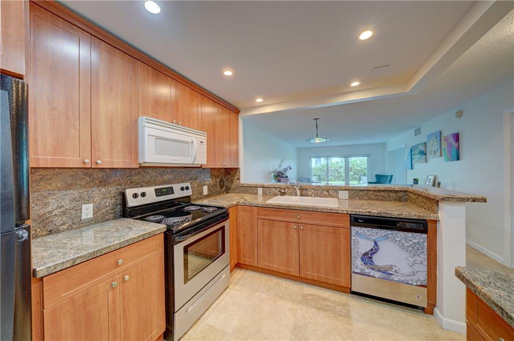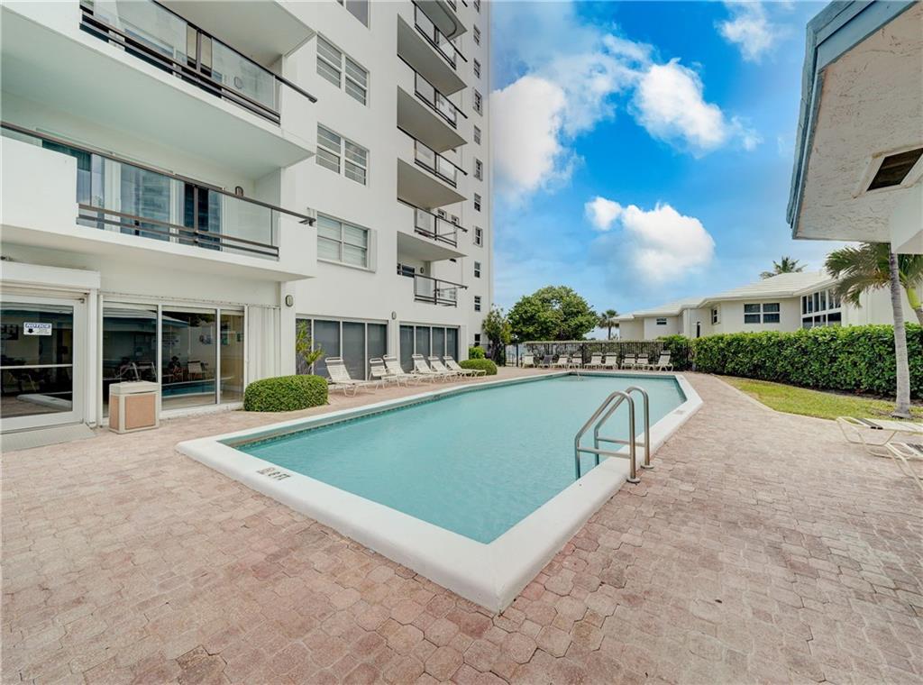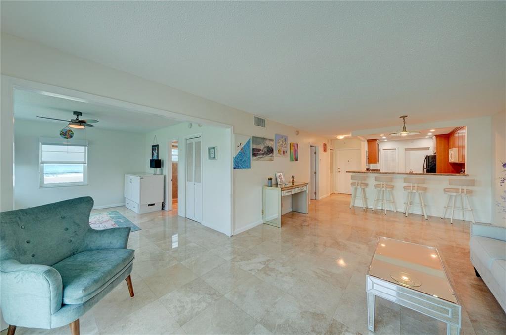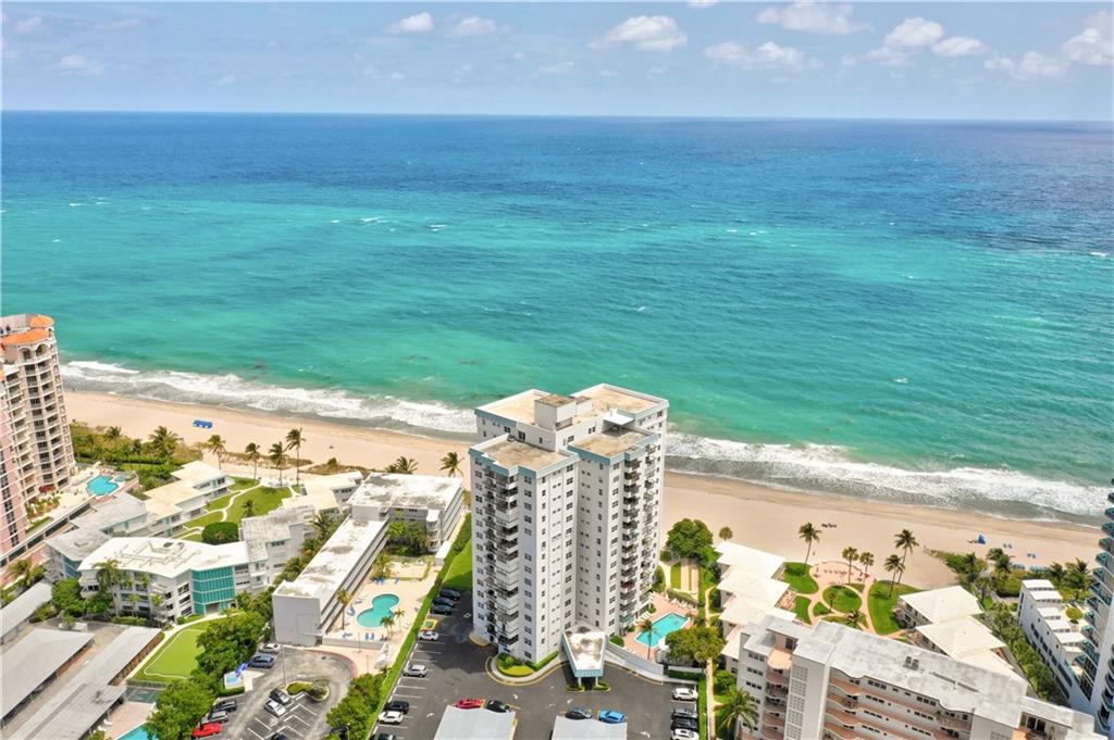 This first-floor unit allows you to wake up to breathtaking ocean views. Rare Northeast corner 2/2 renovated and well-kept condominium. The oceanfront building is right on the sand in this prime beach location. This unit is a rare find at a reasonable price! DIRECTLY ON THE BEACH AND LOW DUES, THIS IS IT!! With an open floor plan, large en-suite bedrooms with walk-in closets, marble floors throughout, granite counters, impact windows, hurricane shutters, a new water heater, a private patio overlooking a semi-private grassy area, and only a few steps to the beach! Both bedrooms have direct ocean views, with one bedroom being used as a den. The building features a pool, hurricane impact windows/doors, shuffleboard, a club room, on-site management, and a tele-entry system.