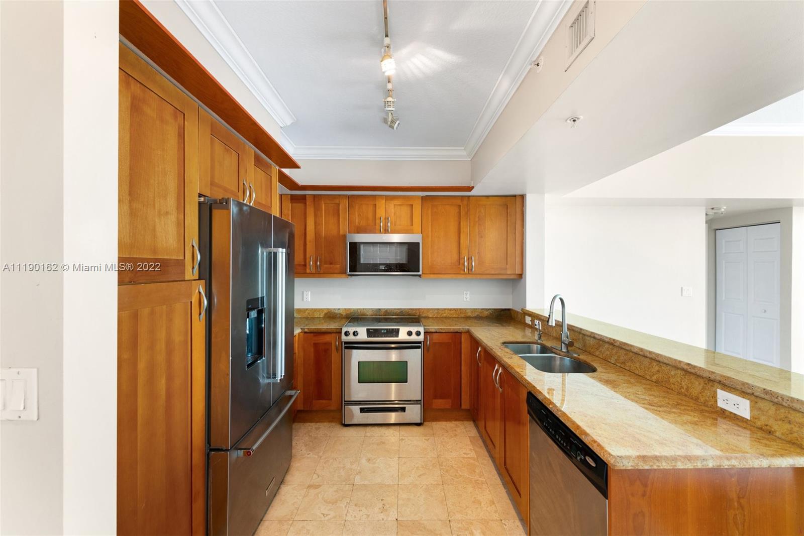 Rarely available! Super cozy apt. on high floor with Golf Course, Pool, & Sunset Views. PLUS 10 ft CEILINGS! Ceilings 1.5 ft higher on this floor. Spacious floor plan with balcony & open kitchen are great for family gatherings & entertaining. Apt. is fully equipped with impact windows, granite counter tops, SS appliances, WASHER/DRYER, plus a huge storage room. (See photo) Duo Condo is loaded with amenities. 24hr security, valet parking, business center, theatre room, tennis, spa & fitness center, jogging path, & a billiard & party rm. Best location too! Walk to the beach, Starbucks, Panera Bread, fine & casual dining. Gulfstream Park & Aventura Mall just a 10-minute drive. Maint. INCLUDES cable/internet, H2O, sewer/trash/appliance contract, & more. SEE BROKER REMARKS. EZ to show.