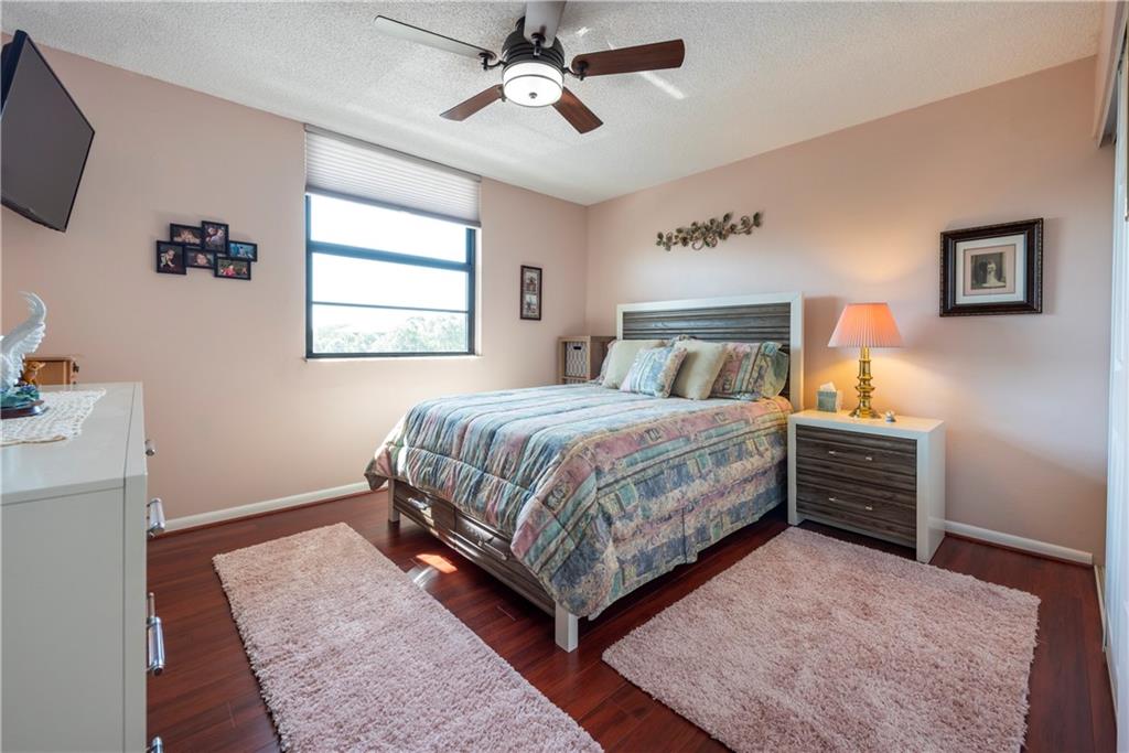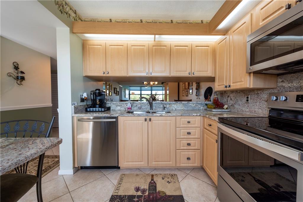 No need to look any further, Beautifully Upgraded 2 Bedroom 2 Bath, Lake and Golf Course Views, NEW HURRICANE IMPACT WINDOWS, NEWER A/C, NEW WINDOW SHADES REMOTE & TOUCHLESS, NEW HOT WATER TANK, NEW WASHER DRYER, 10YR SMOKE ALARMS. All Tile Floors, Updated Kitchen with Granite Countertops and SS Appliances, Extra Counter & Cabinet Space, California Closets, Built in Desk and Closets in Storage Room. Mrs. Clean lives here and you feel that right as you walk in the front door. Owner has paid attention to every detail you want in a new home, 4th Floor Corner Unit very private. Community has a newly renovated Pool, BBQ & Picnic area, Covered Bike Racks, Living in Pine Island Ridge offers Lush Landscaping, Private Country Club with Tennis, Golf, Sports Bar, Restaurant, Pool, Gym, all included.