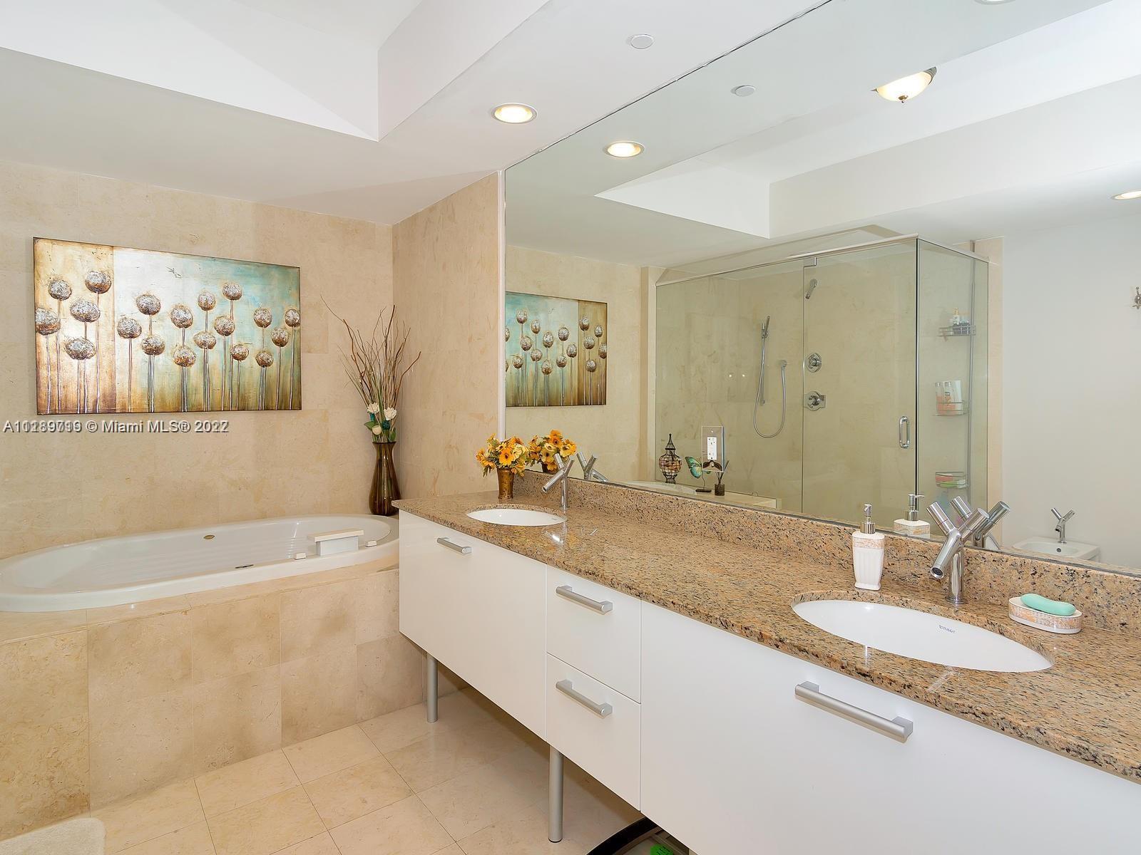 BEAUTIFUL APARTMENT WITH AMAZING VIEWS OF THE OCEAN AND THE INTERCOASTAL. EXCELLENT SPLIT FLOORPLAN. SPACIOUS BEDROOMS WITH OCEAN VIEWS PLUS LARGE ENCLOSED DEN CONVERTED TO A THIRD BEDROOM WITH CLOSET, 2 FULL BATHS, VERY AMPLE BALCONY. SOUTH EAST DESIRABLE EXPOSURE. BEAUTIFULLY POLISHED MARBLE IN MAIN AREAS, WOOD FLOORS IN BEDROOMS. TOP OF THE LINE CLOSET SYSTEMS. OCEAN FOUR IS A LUXURY OCEANFRONT COMPLEX WITH 5 STAR AMENITIES INCLUDING AN EXQUISITE LOBBY, INFINITY EDGE POOL, BEACH SERVICE, GYM, SPA.