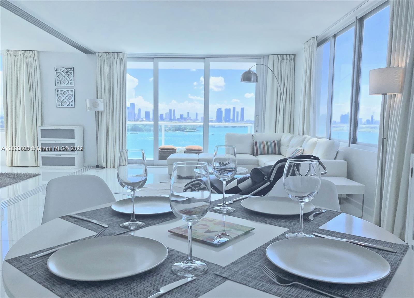 DESIGNER CORNER UNIT W/ DIRECT WATER VIEW - Fully furnished and renovated 2BR/2BTH w/ glass balcony & large High Impact sliding windows system - panoramic Bay & Downtown Miami skyline views from ALL rooms. . Italian porcelain white glass floor throughout, custom lighting & closets. Spacious balcony right over the water. Enjoy al fresco cocktails & dining while enjoying magnificent sunset views. Amenities include a Bayfront heated pool with poolside cabanas, a Jacuzzi, 24-hour valet parking service, a 5,000-square-foot fitness center, sauna, 24-hour security, full-service concierge, 250Gb Fiber Optic internet, HD cable TV. On-site convenience store, and beauty salon and steps away from Wholefoods, Publix, Trader Joe's, coffee shops, Lincoln Road Mall, and Iconic beach "Limmus Park".
