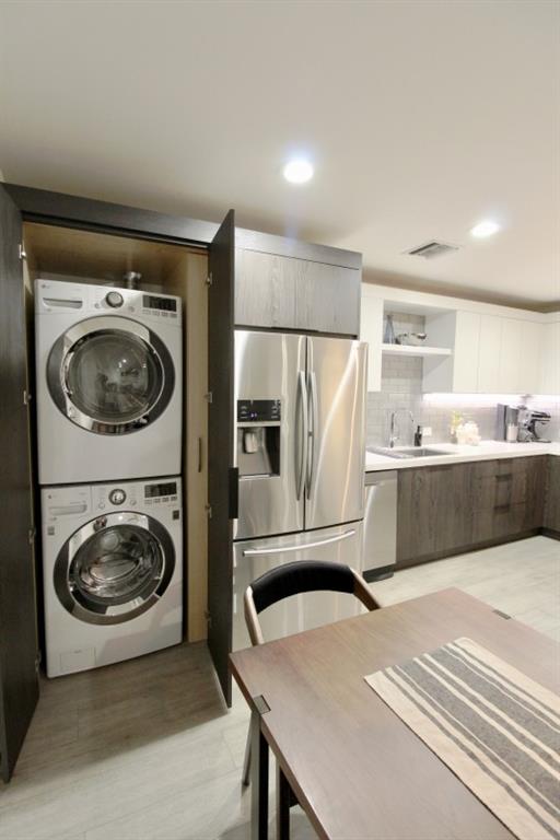 2/2 bright condo with high-end design details. Amazing location, east of US1, in residential neighborhood of Coral Ridge. Fully remodeled unit.All new hurricane windows and doors, porcelain plank floors, solid core doors and high-end door hardware. Large open kitchen w/ soft closed drawers, large single bowl sink, quartz countertops, peninsula with waterfall and glass backsplash. Quiet dishwasher, electric range and convection-micro hood that works as a second small oven. Built-in cabinet with washer and vented dryer.Guest bath with marble countertops and tub with glass shower enclosure. En-suite master bedroom with large master bathroom with double sinks and double hampers, walk-in shower with rainhead and personal handheld and full shower glass enclosure. Custom made built-in closets.