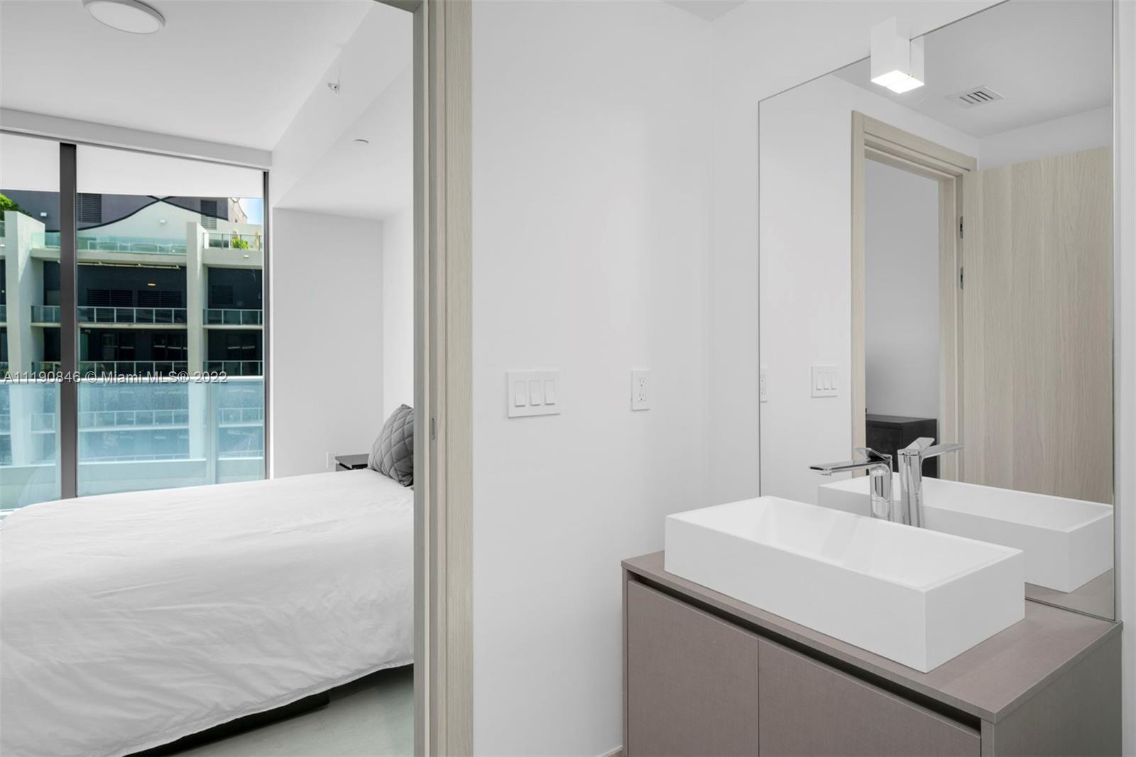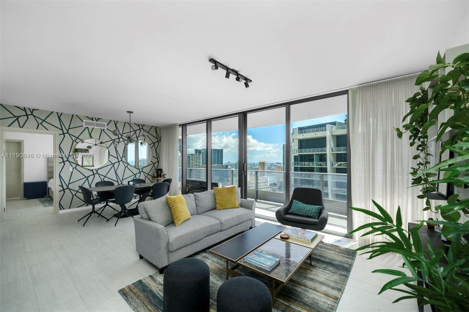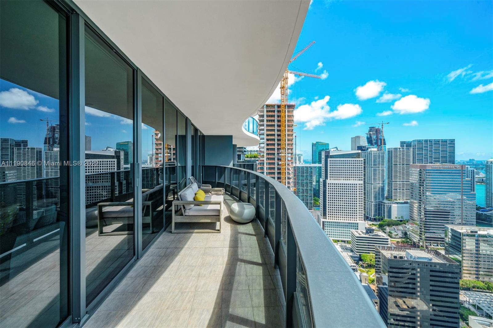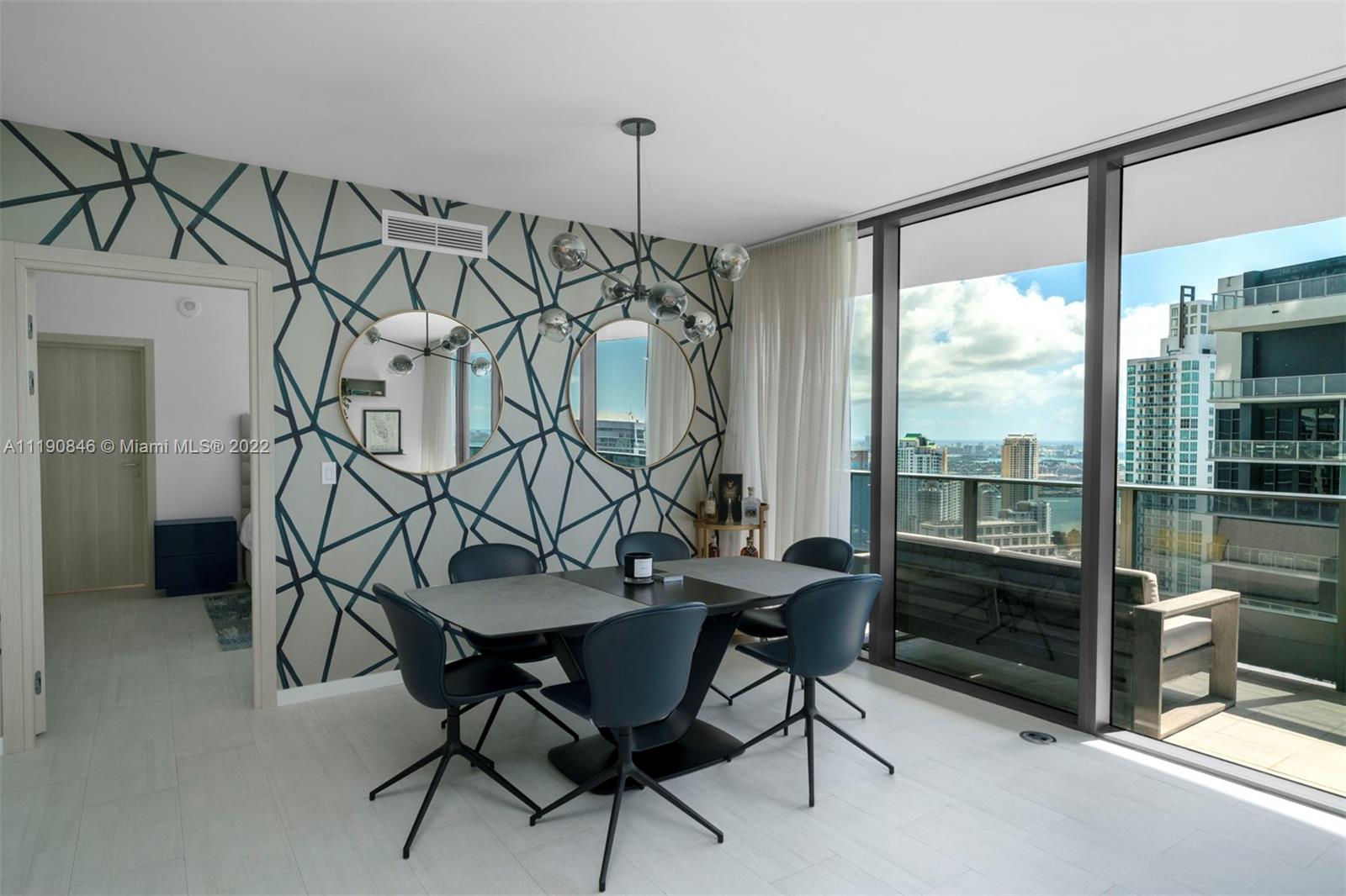 Located in the heart of Brickell, this contemporary and luxurious 2-bedroom, 2.5-bath condo is a must-see! Inside the open layout, walls of glass frame water views and fill every corner with sunlight. Custom wallpaper and upgraded light fixtures lend a sophisticated feel to the main gathering areas. Kitchen features include high-end Miele appliances, Snaidero cabinets, a peninsula with seating, and a large pantry with built-in storage. Electric blinds provide privacy when you retire to your bedrooms and custom closets offer plentiful storage. Marble is on display in the primary bedroom with a walk-in rainfall shower. Building has premium amenities with two pool decks, 64th floor gym and spa.