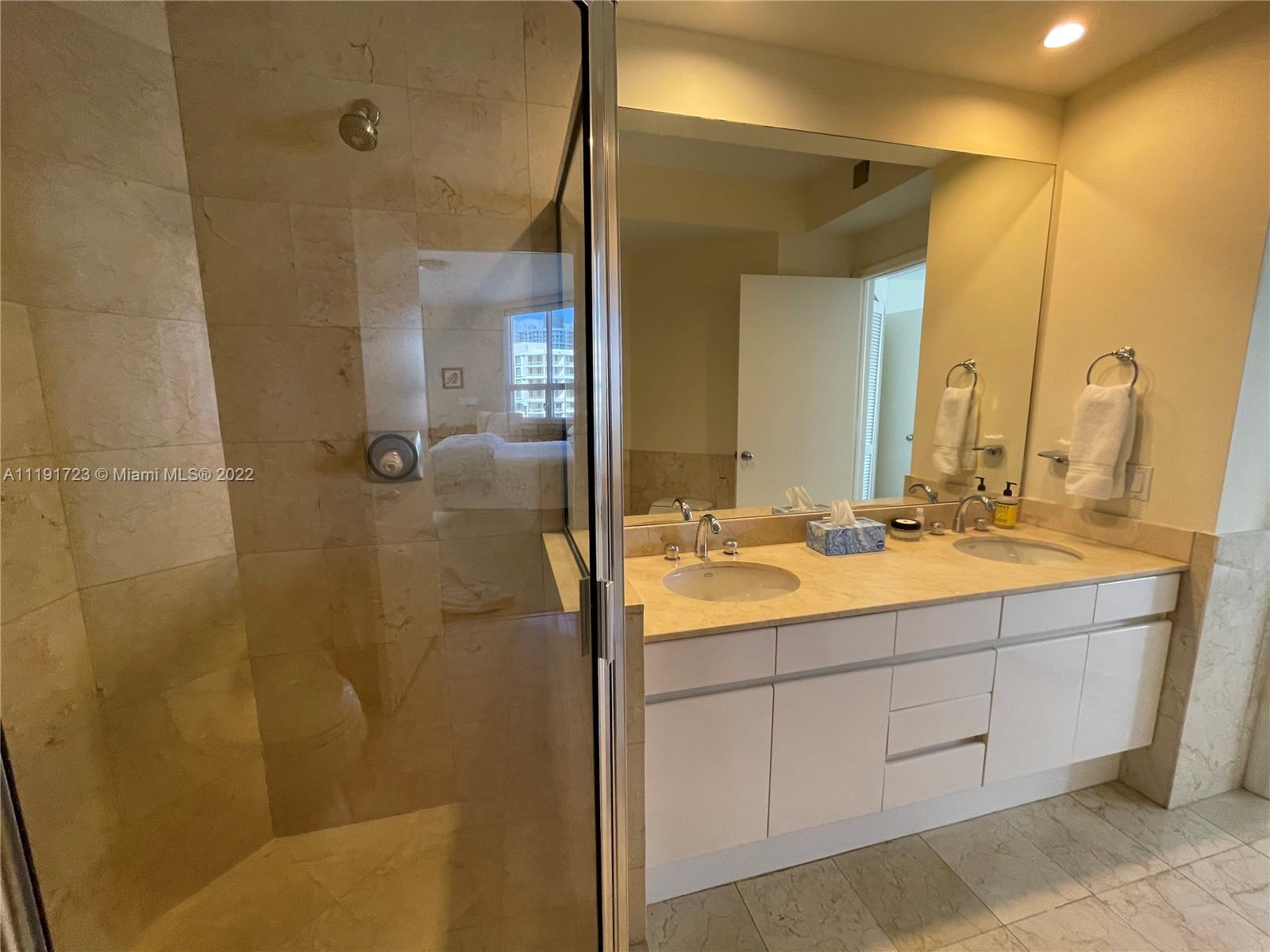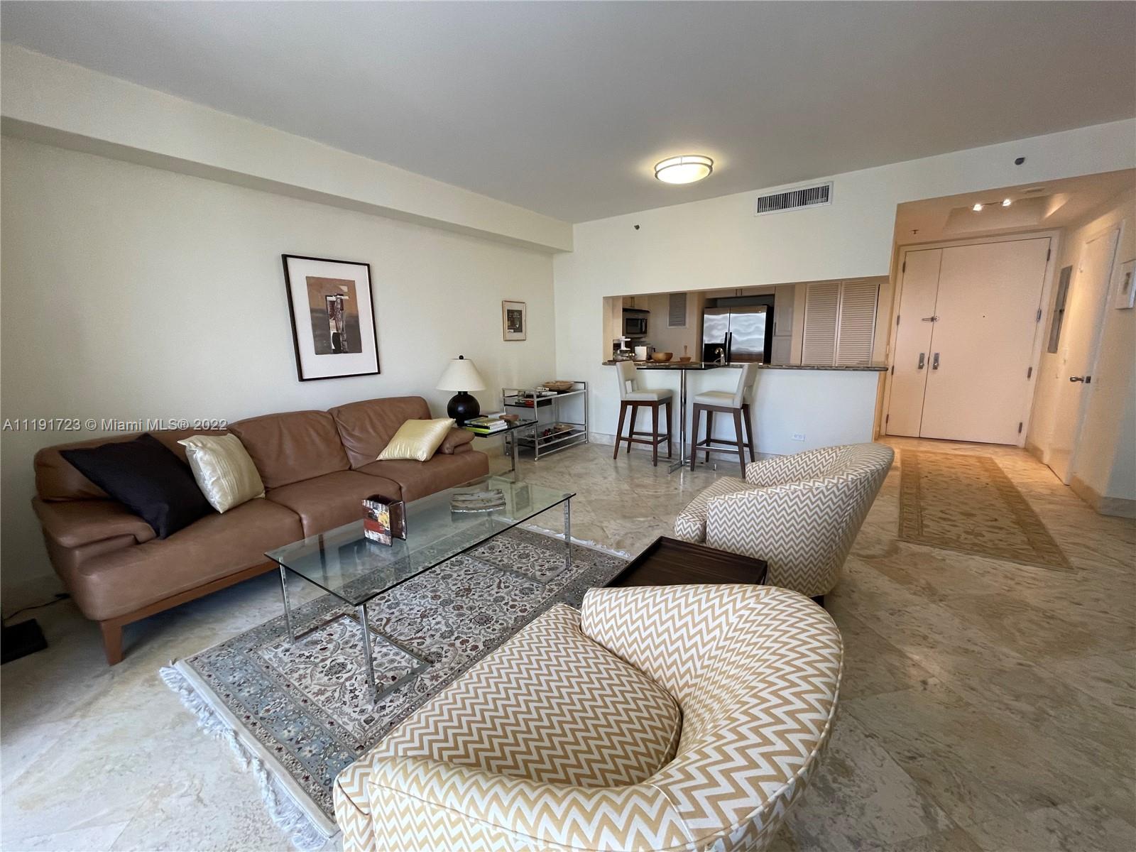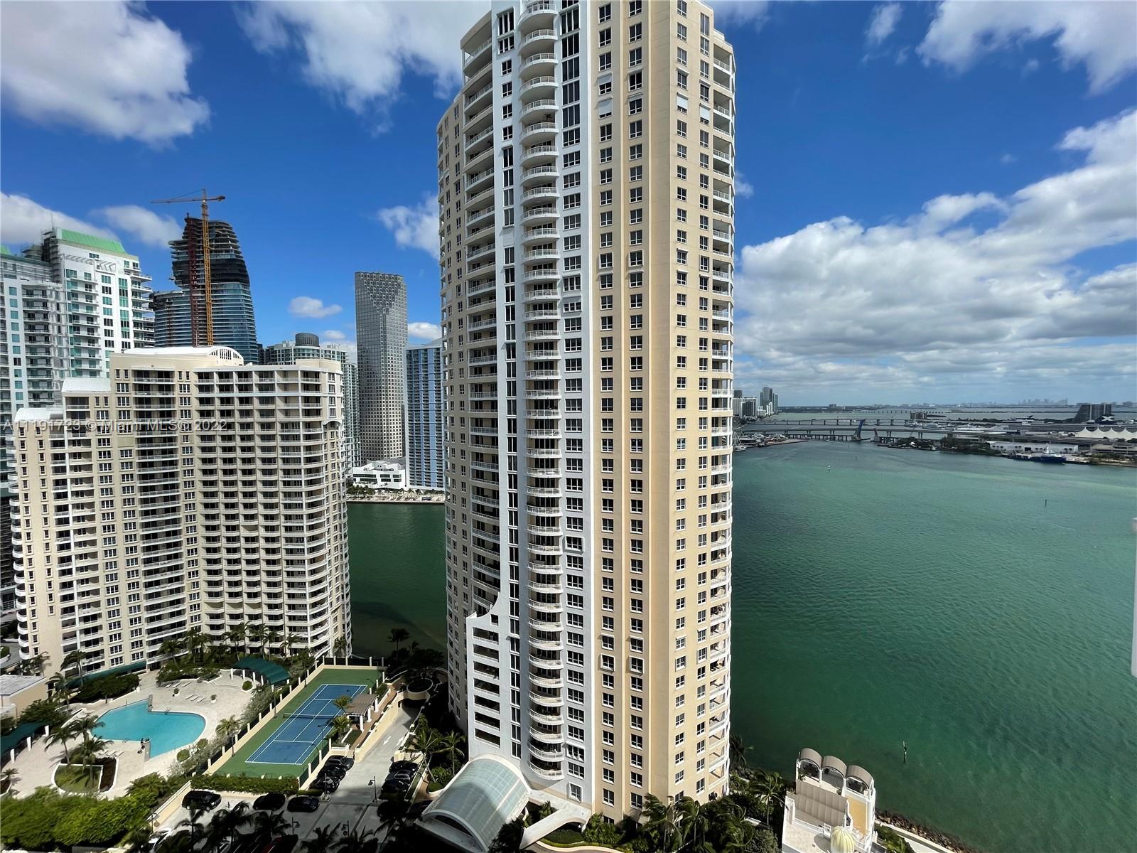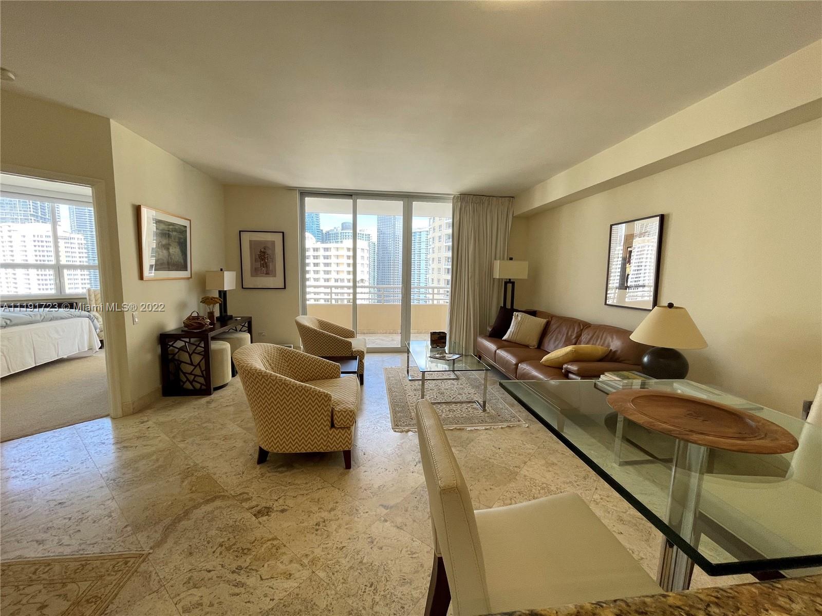 Beautiful and spacious 1 bedroom and 1.5 bath, 907 sq ft with amazing views of the bay and city. Marble floors in the living area, granite counter tops, stainless steel appliances, and much more. Unit at the prestigious Two Tequesta at Brickell Key, building have top amenities, with 2 floor gym, pool and barbecue area. Must See
