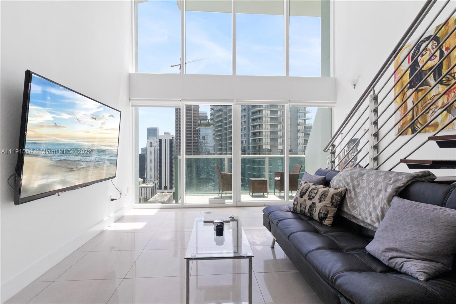 Live limitlessly in a modern 2-story loft in the best part of Brickell. This bright & open floor plan boasts 18 ft ceilings with a full wall of hurricane impact windows. The L-shaped kitchen has stainless steel appliances & is large enough to place an island or separate dining table. A half-bath is conveniently downstairs for guests, while the master suite upstairs has a private full bath and laundry all in one! Brickell on the River is located on a scenic riverfront walking path where you can watch the wildlife & boats go by. Just downstairs there are bars, restaurants, and even a coffee shop & market. Plus, avoid Brickell traffic with the metro mover right next door and a back road shortcut to the highway!