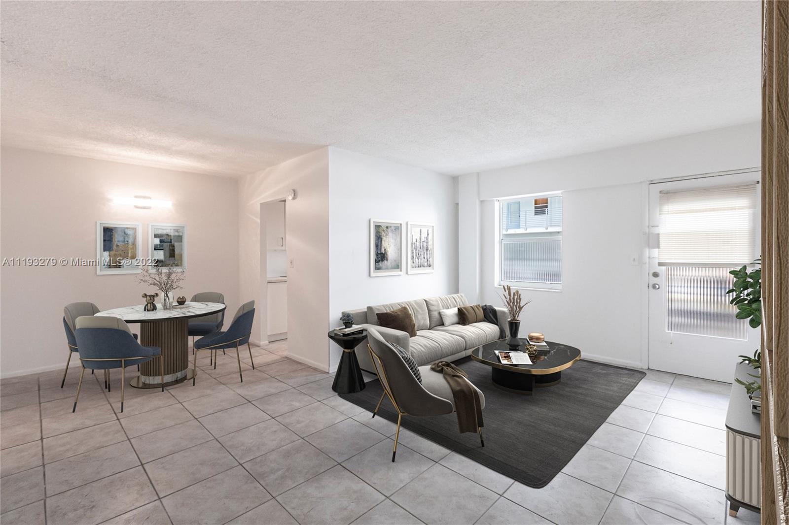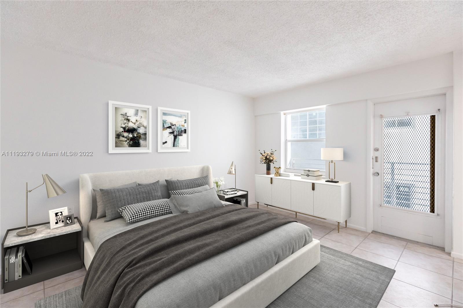 Great building in the Flamingo Park/Lincoln Road neighborhood. Large one bedroom apartment with one full and one half bath, private balcony, pool, and covered gated parking with visitor parking. Well managed financially healthy building with good reserves and passed its 40 yr recertification. Apartment well maintained, move right in or renovate to make it your own. Walk to the beach, tennis in the park, dinner on Lincoln Road. Photos with furniture are virtually staged.