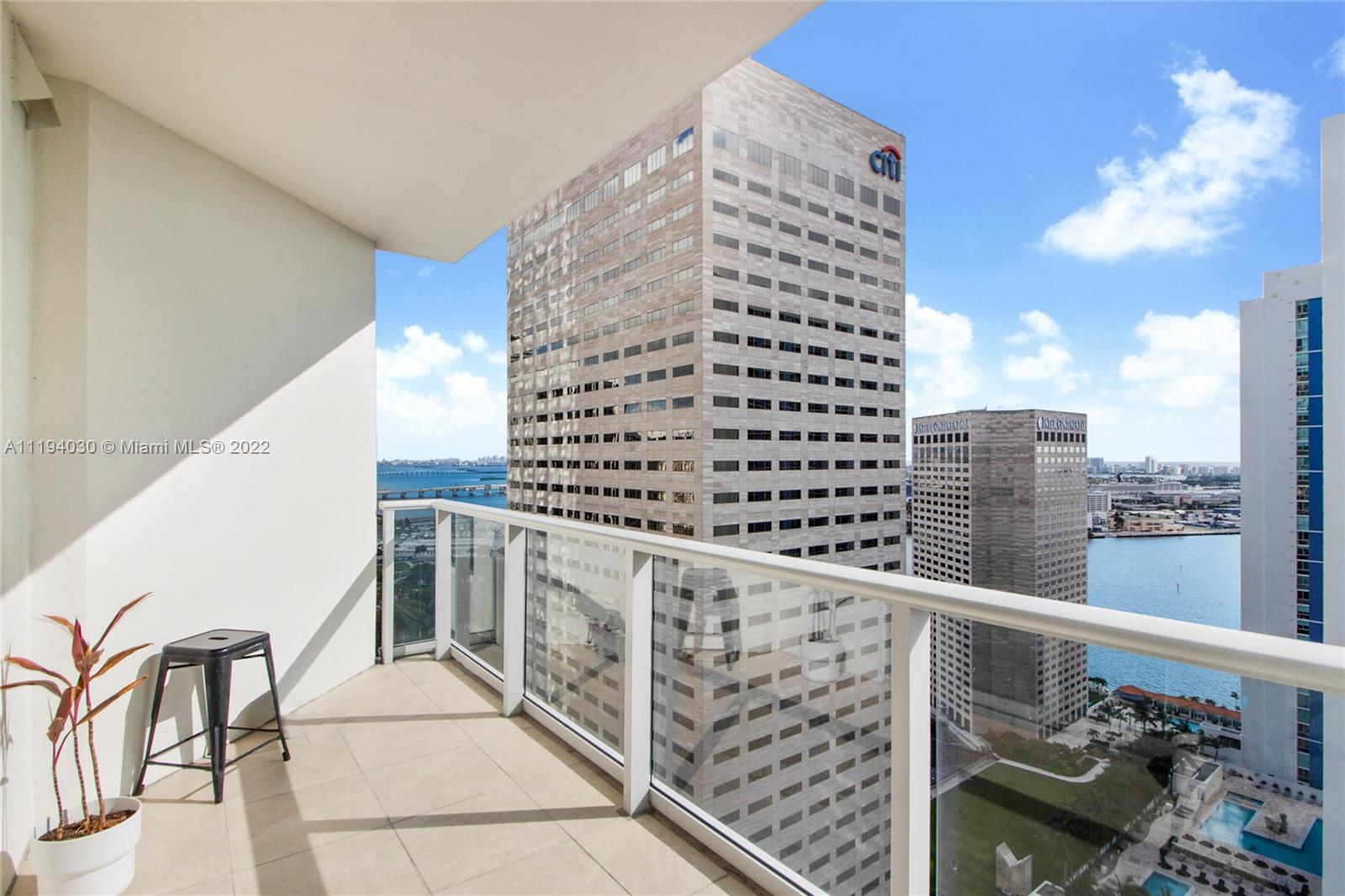 Fabulous water and city views from this spacious 2 Bedroom/2 Bath unit. Tile flooring throughout. Floor to ceiling glass windows. Open kitchen with Italian cabinetry, granite countertops, and stainless steel appliances. 1 assigned parking space. Prime Location. Met1 Tower is located in the heart of downtown w/ luxury amenities-fitness center, Pool, Hot Tub & Spa, billiard room, business center, kid’s playroom, 24 hour front desk, valet parking, and restaurant on site. Within walking distance from Whole Foods, Silver Spot Cinema, Metro-mover, Miami Heat Arena, Restaurants, Brickell City Centre and much more. Tenant Occupied until August 31, 2022. Photos are not representative of exact unit.
