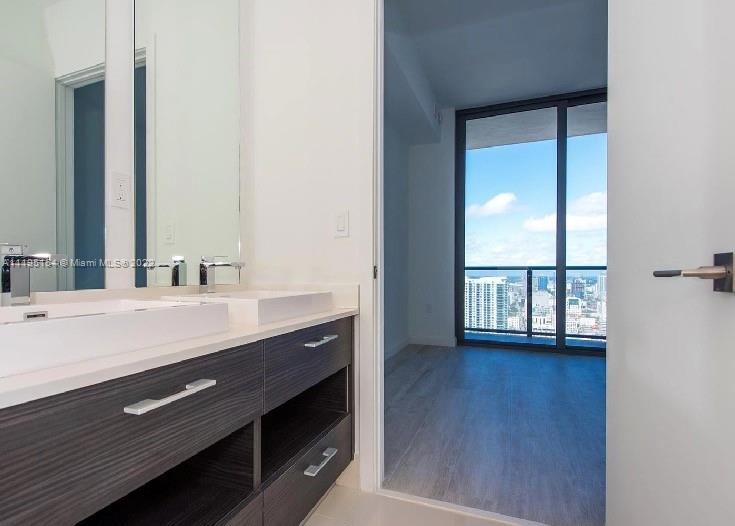 Breathtaking views from every room! Highly coveted corner unit with ensuite bathrooms on a high floor. 3 full master suites plus guest half bath and a separate den/office area.This luxury unit features a huge wraparound balcony with skyline, river and ocean views. Wood-tile floors, floor to ceiling windows and high-quality appliances together with the round architecture add to the luxury touch. This building boasts two floors of amenities including a rooftop pool, lab pool, spa, business and clubrooms, gym, kidsroom and a private cinema. Directly next to the shops at Mary Brickell Village & Brickell City Centre.