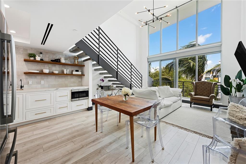 Stunning & Bright 2 Story Penthouse in the heart of South of Fifth, Miami beach's most sought after neighborhood. This 2/2 1444 sq ft penthouse with 18 ft ceilings was tastefully remodeled with high end finishes and features a fully updated custom kitchen, custom milled bathroom vanities, custom doors, and more. The kitchen is as functional as it is alluring with a Fisher Paykel dishdrawer, induction cooktop, smart oven, reverse osmosis water filter, custom reclaimed wood shelves, quartz counters and handmade Moroccan tile backsplash. Large master bedroom, closet and bath located on the second floor. Private rooftop with water, electric, artificial turf and 360 degree views of Miami Beach. Absolut Lofts is a boutique, Kobi Karp fantastic building with fully funded reserves. Furniture Avail