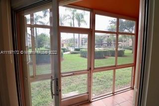 DESIRABLE 1BR 1BA, MODEL G, WITH WASHER-DRYER, LIGHT TILE FLOOR, CURRENT ASSIGNED PARKING SPACE #M21 IN FRONT OF UNIT. APARTMENT IS CONVENIENTLY LOCATED ON FIRST FLOOR WITH MAGNIFICENT PANORAMIC VIEWS OF POOL & LUSH GARDEN. STEP OUT THE BACK PORCH NEXT TO THE POOL AREA. UNIT ALSO FEATURES COMPLETE ACCORDION SHUTTERS & GLASS TOP RANGE. The village is guard gated & patrolled with serene walking trails & relaxing outside greenery, golf, tennis, pools, fitness centers & complimentary transportation. The apartment is conveniently located next to Pembroke Gardens Shops and Pembroke Lakes Mall. It is a verified HOPA 55+ community.