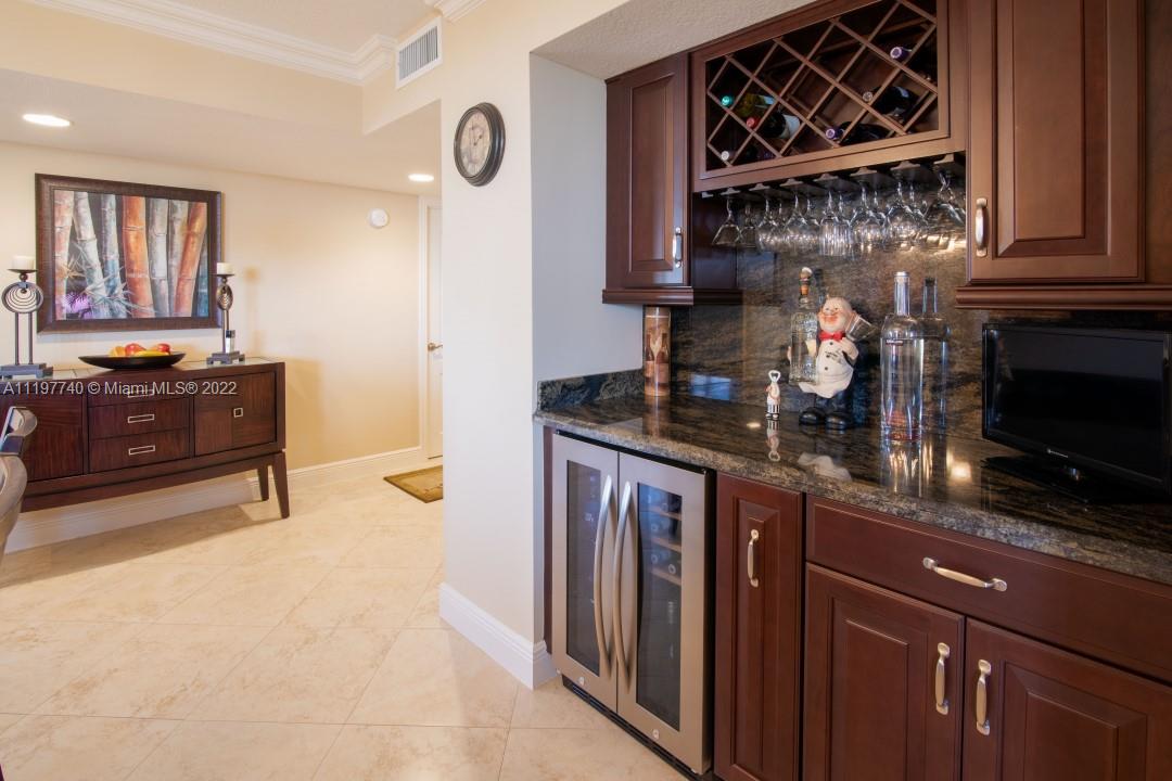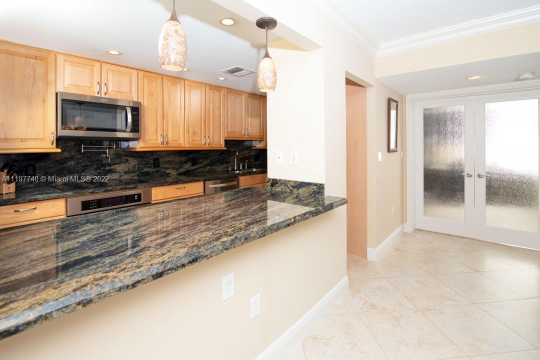 Enjoy stunning views of the intercoastal and ocean while you eat dinner and sip cocktails on your 10th floor balcony. This 3 bedroom/2 bath (3rd bedroom currently used as an office) has an open floor plan. It has been tastefully updated with stainless steel appliances, granite countertops, cabinets and tile throughout the home. An oversized washer and dryer are in the unit! The apartment is spacious with plenty of closets & not one but two pantries. The unit comes with 1 garage spot and the building has plenty of guest parking. A/C was updated in 2018. Has full surround sound system, impact windows and shutters. Feel like relaxing by the ocean? Your private gated-beach just 285 steps away. Feel like taking a stroll to a nice restaurant, Sea Watch is a short walk away.