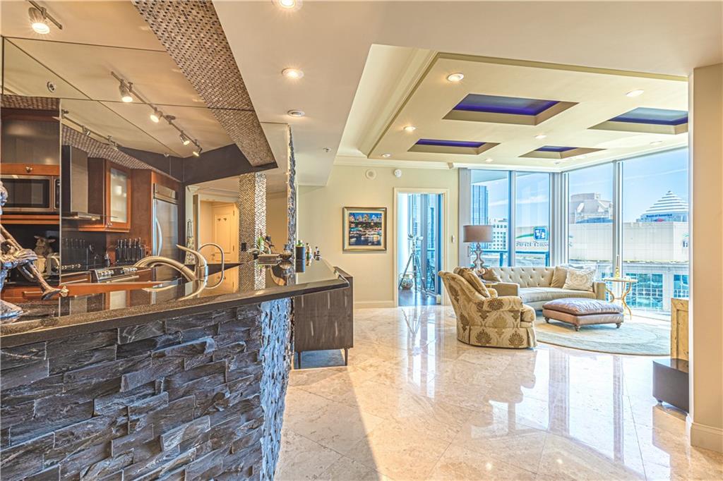 HIGHEST “08” SOHO FLOOR PLAN IN THE BUILDING! SEE ALL THE WAY TO THE OCEAN & ENJOY THE SPARKLING CITY VIEWS. OVER $200K IN UPGRADES THROUGHOUT, INCLUDING MARBLE & WOOD FLOORS, CUSTOM DOORS, MOLDINGS, CEILINGS & WALLS, TOP OF THE LINE APPLIANCES, EXPANDED BREAKFAST BAR, REDESIGNED BATHS, MOTORIZED WINDOW TREATMENTS, BUILT OUT CLOSETS, BOSCH AC, & MUCH MORE TO APPRECIATE IN THIS PRESTINE 2 BEDROOM /2 BATHROOM RESIDENCE. 4M RENOVATION OF THE COMMON AREAS BY AWARD WINNING INTERIORS BY STEVEN G. LORH. 5-STAR AMENITIES INCLUDE MODERNIZED LOBBY WITH WATER FEATURES AND KOI POND, WORLD CLASS FITNESS CENTER & SUN FILLED POOL DECK.