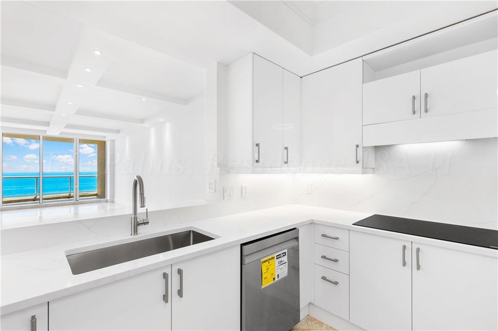 BEAUTIFUL NEWLY RENOVATED PORTOFINO AT THE PALMS! LARGE GREAT ROOM, NEWLY RENOVATED KITCHEN, 3 BEDROOMS AND 3.5 BATHS. READY FOR YOUR FURNITURE! COME LIVE IN PARADISE DIRECTLY ON THE SAND WITH CHAIR & TOWEL SERVICE ON THE BEACH, STATE OF THE ART GYM W/STEAM & SAUNA, SQUASH/RAQUET BALL COURT, TENNIS/PICKLE BALL COURT, 24HR VALET, 24HR FRONT GATE & FRONT DESK, 2 CLUB ROOMS, BOARD ROOM, BILLIARD ROOM & MUCH MORE!