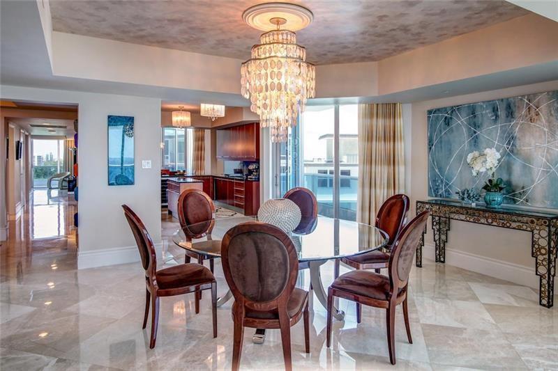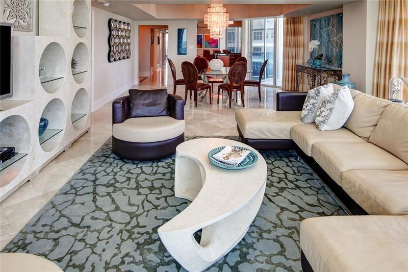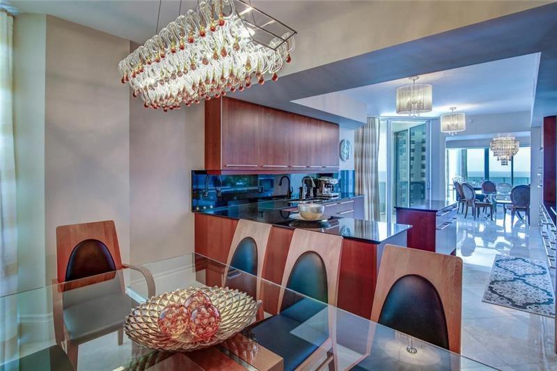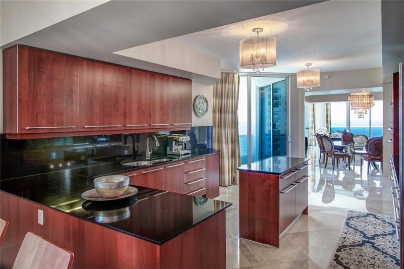 Luxurious Aquazul a boutique building, highly desirable in Lauderdale by the Sea! Situated directly on the sand with private beach access. Spacious corner residence w spectacular ocean and city views. Large bright 3 bd plus den/media, 3029 sqft, 4 balc w views east, west, north. Featuring Marble floors, elegant fixtures, custom & faux finishes. Gourmet open kitchen w Italian cabinetry, granite counters, Miele appliances, island, eat in kitchen. Elegant dining room & living room w max views and comfort. Large primary suite, ocean side balcony, 2 entrances to bath/shower, dual vanities w/ a large jacuzzi tub. Lge pantry and laundry, 2 pk spaces, plus storage unit. Amenities-beach chairs umbrella, fitness center, tennis court, security, pets welcomed. Comes furnished, turnkey move in ready.