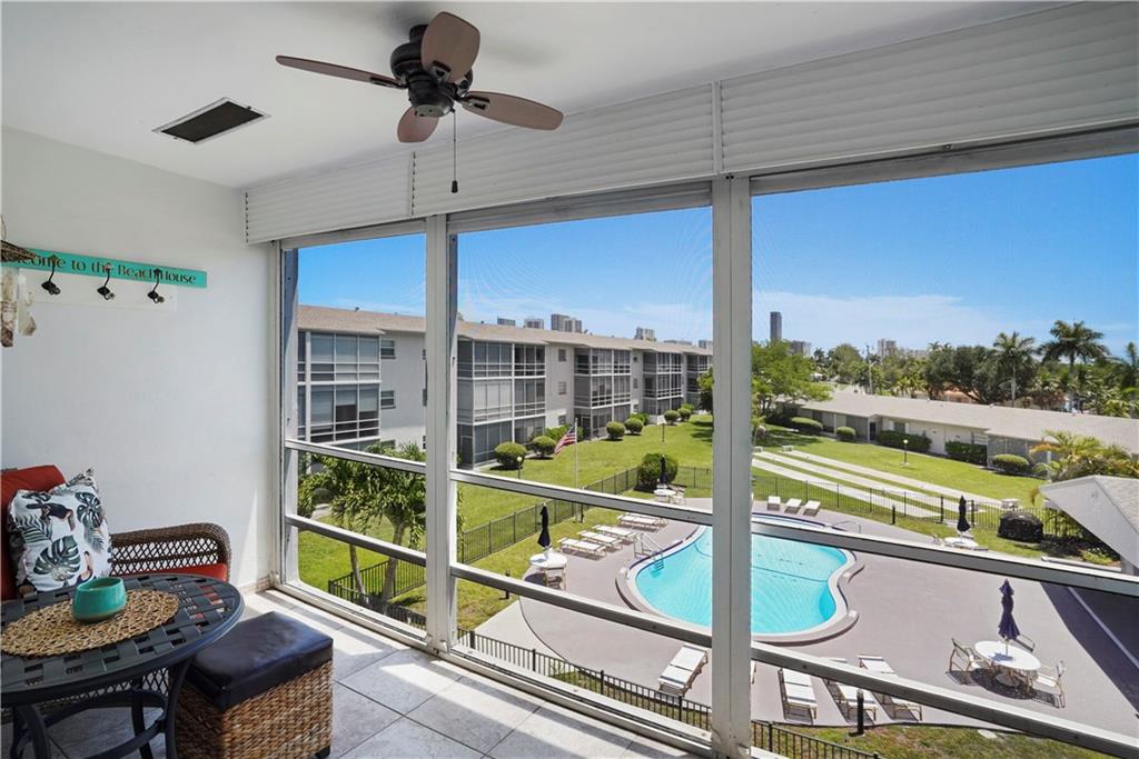 Just kick back, relax from your 3rd floor screened in balcony overlooking Golden Isles condominiums beautiful gardens and community pool. This 1 bedroom | 1 bathroom condo is in a prime location close to shopping, fine dining, entertainment, Gulfstream Casino, & minutes to the warm waters of the Atlantic Ocean. Nice kitchen w/ SS appliances. HVAC is approximately 10 years old, hot water tank 2 years old, and new hurricane impact windows throughout the condo. There are pull down shutters for the balcony. This boutique building is located in Golden Isles subdivision of Hallandale Beach w/ 24 hr. security guard gated community amongst million dollar homes. Thermostat also has a humidifier for low energy costs. Property comes with (1) assigned parking space (#64) and ample guest parking.
