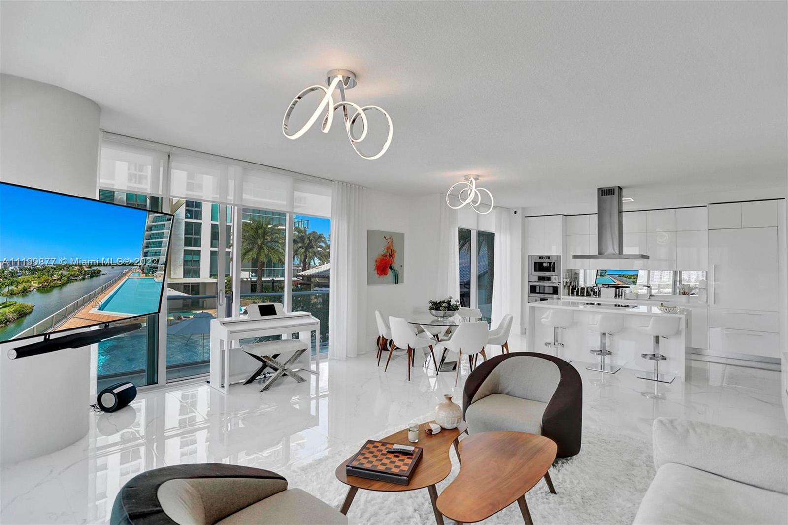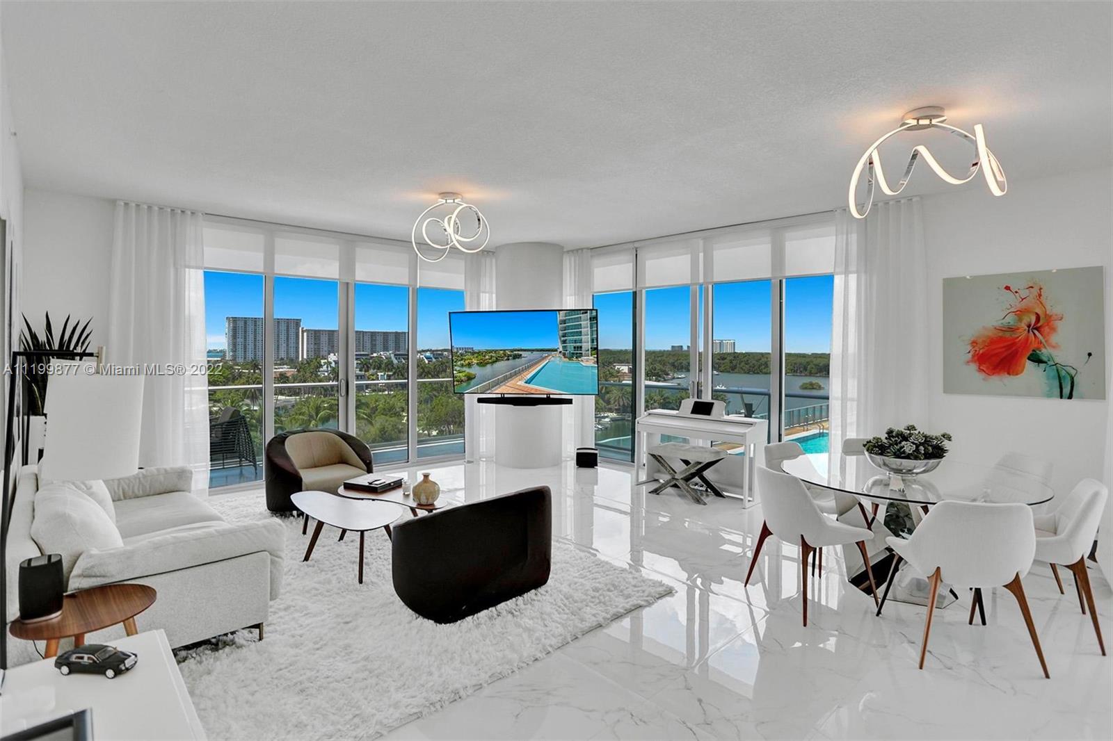 Rare opportunity to own this gorgeous, fully upgraded and professionally furnished 3 bedroom, 3.5 bath corner apartment with 10ft ceilings! . Beautifully and tastefully designed by famous designer Steven G, with premium Bosch appliances and finishes. Italian doors through out! This apartment equipped with Finger prints door lock and security cameras. The unit is ideally located overlooking the water and the pool. Enjoy the sunset each and every evening! Parque Towers is located in the heart of Sunny Isles Beach and this building has all the amenities you and your family will ever need!