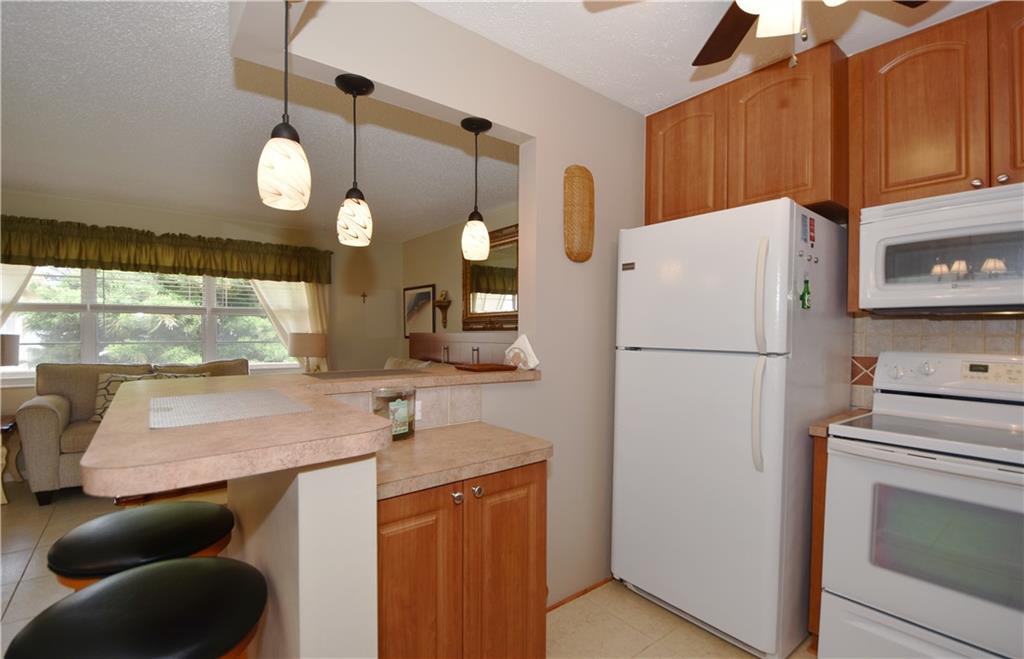 Beautiful second floor 1/1.5 corner unit with central A/C. Updated kitchen, tile throughout and large screened in porch with a relaxing garden view. Condo has lots of natural light and comes partially furnished. Wonderful amenities featuring manned guard gate, pools, clubhouse, theater and much more! Enjoy the Florida lifestyle and make this condo your home!