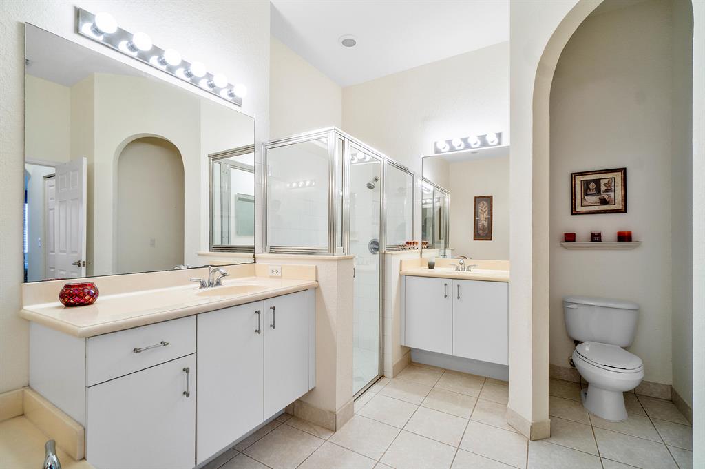 Don't wait to come see this highly sought after 3 Bedroom Villa in the exclusive Brittany Bay community located in Andros Isle. Just beyond the front doors, you will be welcomed into a large foyer entrance. The light and bright great room includes 16x16'' ceramic tile and boasts expansive vaulted ceilings. The master suite has 2 large walk-in closets and a fabulous coffered ceiling. Enjoy outdoor living on your large L-shaped covered patio or open your double sliding glass doors to bring the outside in. Take a short stroll to visit the resort style amenities including a beautiful clubhouse, gym, billiard room, tennis, and pool. Andros Isle is centrally and conveniently located less than 15 minutes to downtown WPB and close to both the Turnpike and I-95. This one will not last long.