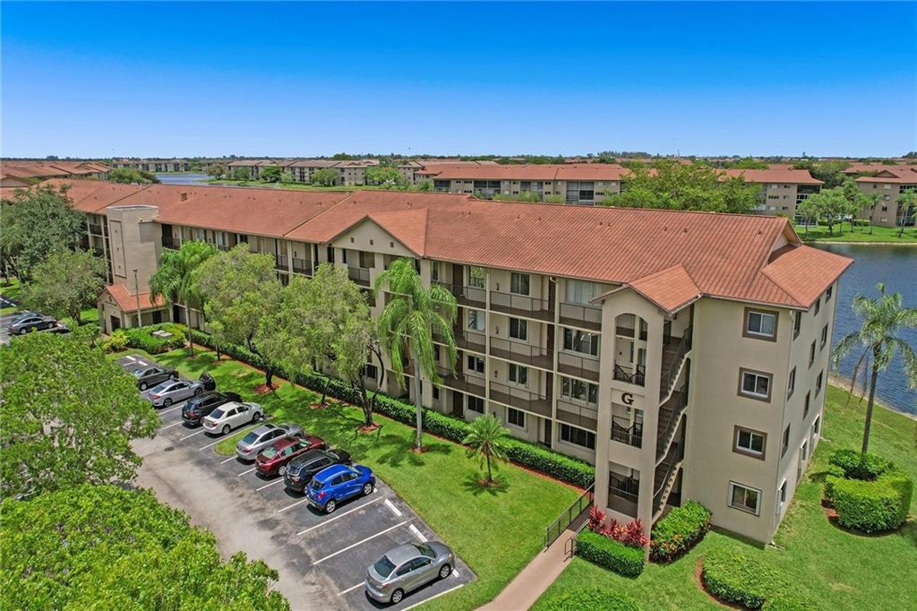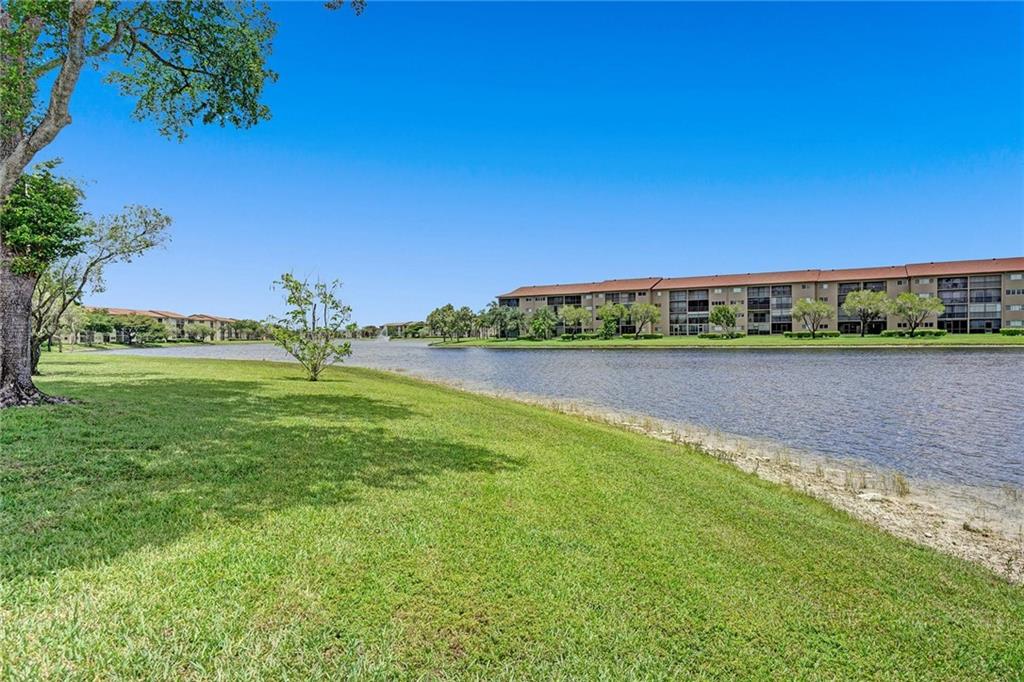 You will love this delightful two-bedroom, two-bathroom, first-floor entry, corner unit overlooking the beautiful lake at Century Village. This unit has an assigned parking space, plus plenty of visitor spaces just across the side of the unit. The unit is also right across from the community pool. It is in excellent condition and move-in ready for the new owner to enjoy. Century Village is a 55+ community catering to a healthy and active lifestyle by offering walking trails, gyms, tennis courts, clubhouses, pools, etc. while offering peace of mind and tranquility when needed.