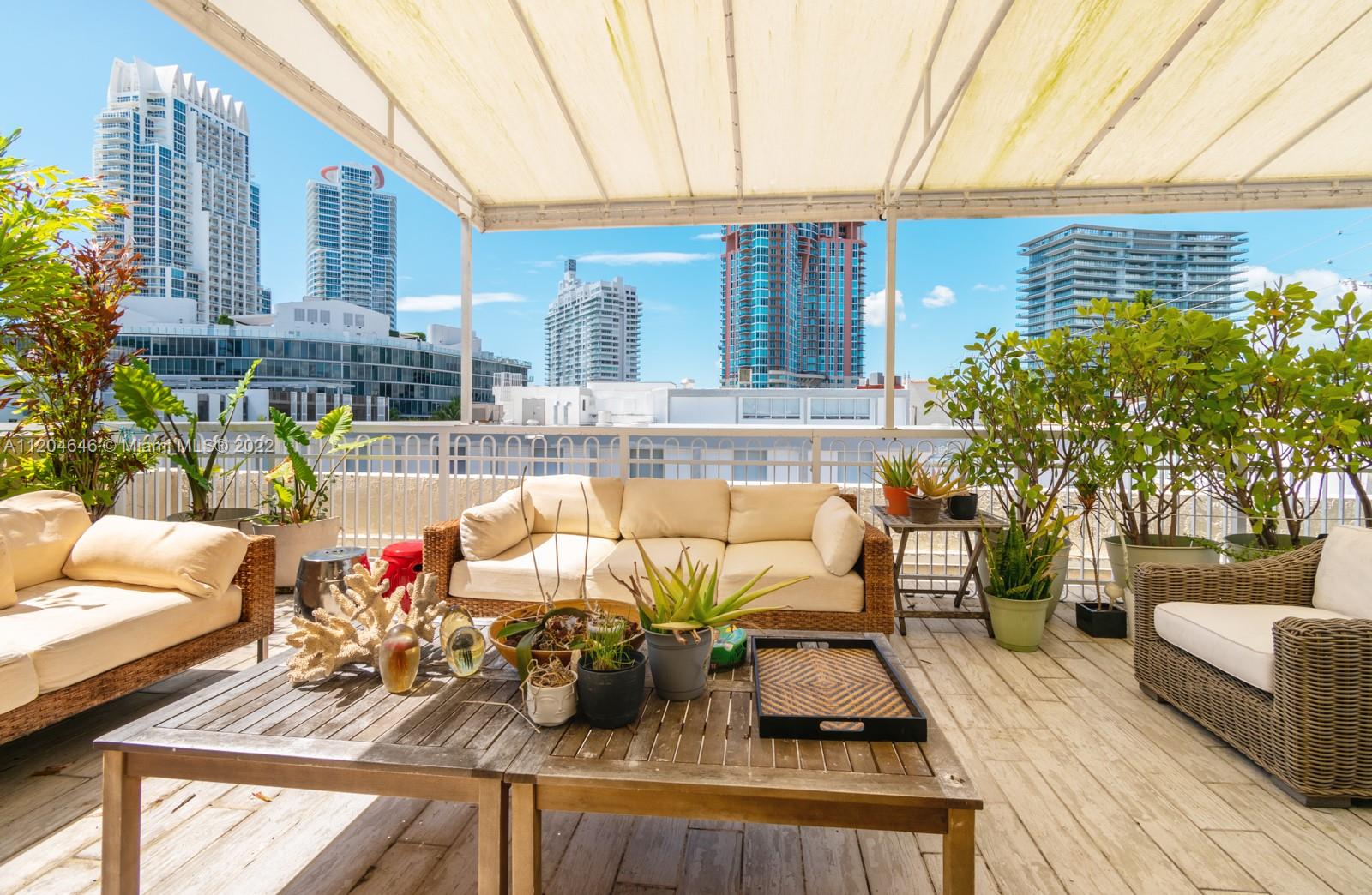 THIS IS A 700 SQ. FT. ONE BEDROOM ONE AND A HALF BATHROOM UNIT WITH AN ENORMOUS 900 SQ.FT. COVERED PATIO BALCONY ON THE PENTHOUSE FLOOR IN THE MERCURY CONDO-HOTEL. THIS UNIT CAN BE SHORT-TERM RENTED SUBJECT TO THE HOTEL PROGRAM AGREEMENT FOR INCOME POTENTIAL. YOU OR YOUR HOTEL GUESTS WILL ENJOY ALL THE BEST SOUTH OF FIFTH HAS TO OFFER. CLOSE TO RESTAURANTS PARKS AND THE BEACH. AMENITIES INCLUDE POOL, RESTAURANT / BAR & ELEVATOR.
