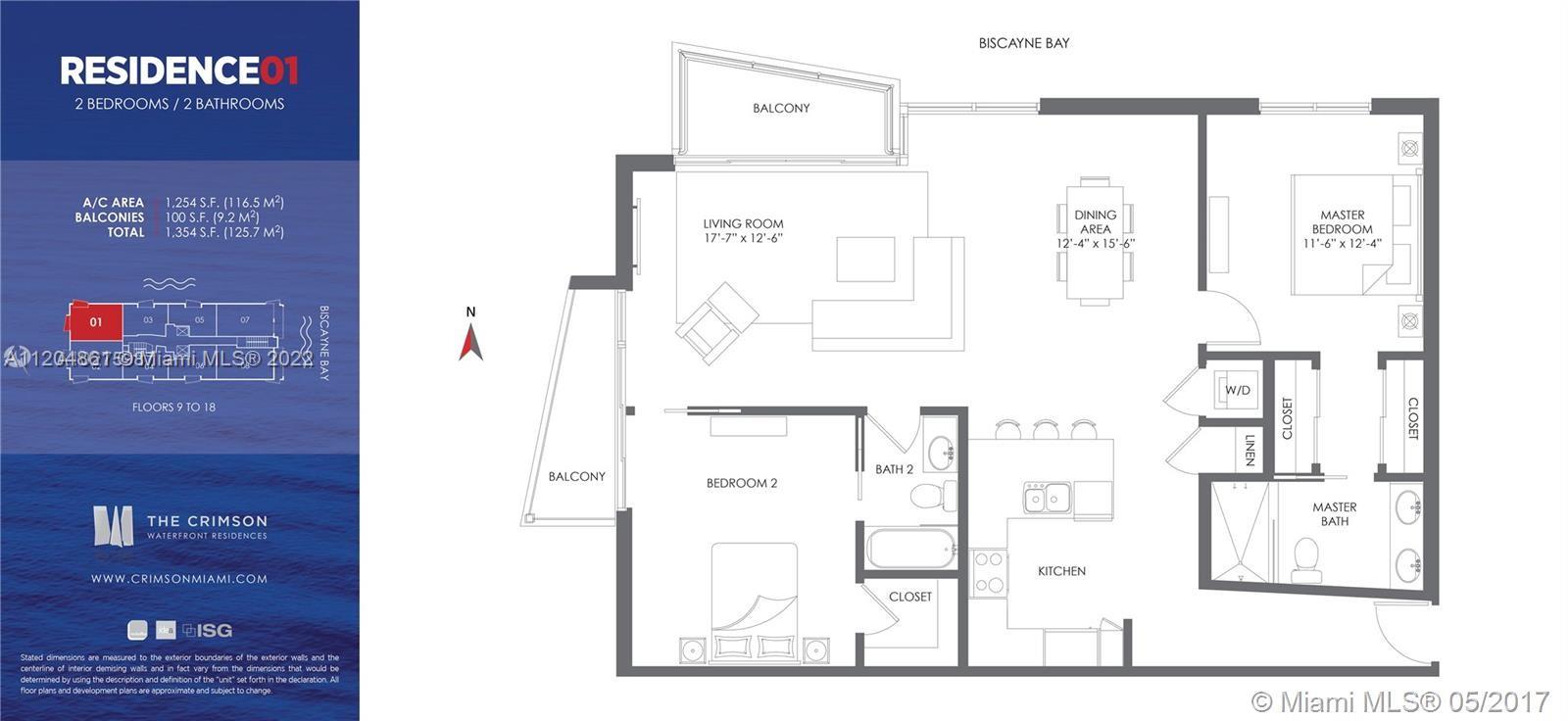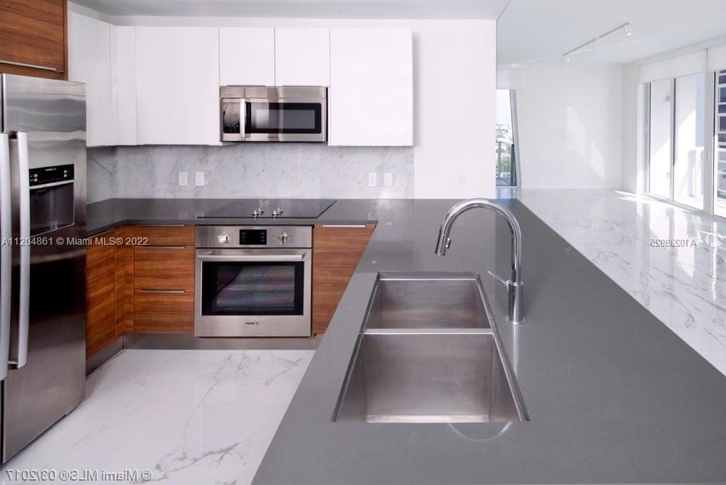 The Crimson Waterfront Residences are located on Bisycane Bay at NE 27th Av. The building is LEED-Silver Certified Energy efficient. The 1,311 s/f unit has beautiful bay and skyline views, spacious terraces with glass railings, Italian cabinetry, quartz countertops, Bosch s/s appliances and s/s under-mounted sink with single lever kitchen faucet with pull out spray. European-style bath fixtures, sink an accessories, front loading stacked washer/dryer, energy efficient air-conditioning system with touch control thermostat, wall sound insulation and energy-efficient and impact-resistant windows. The building is located in the trendy Edgewater neighborhood with easy access to Midtown, downtown and beaches.