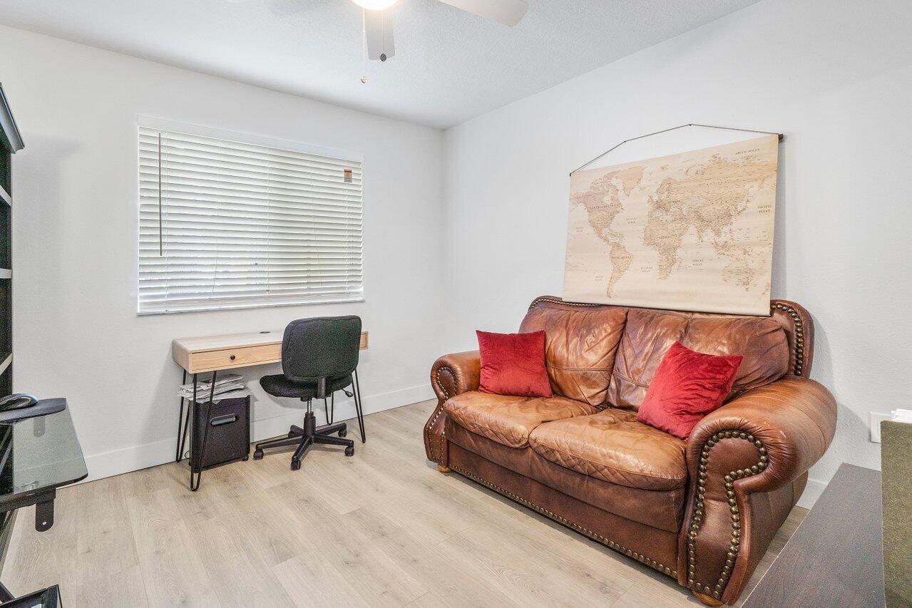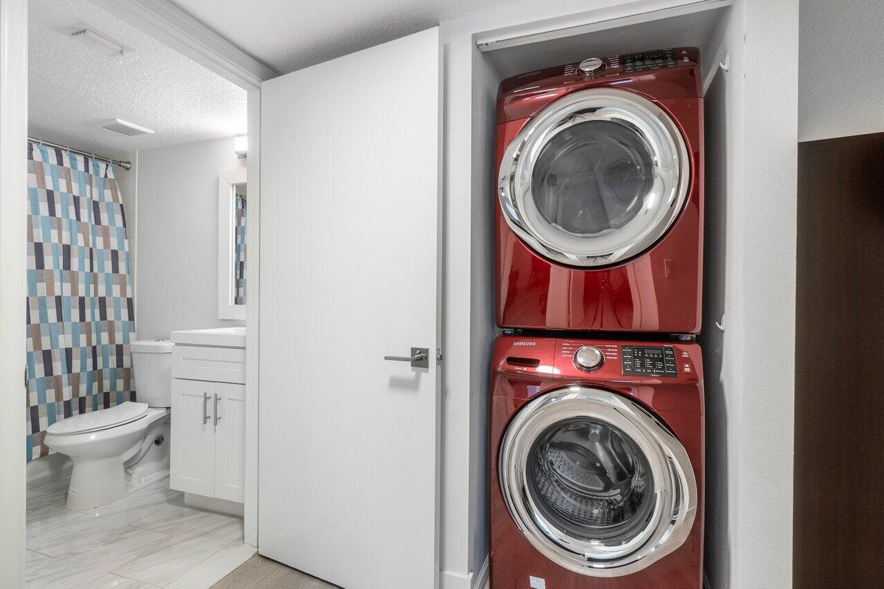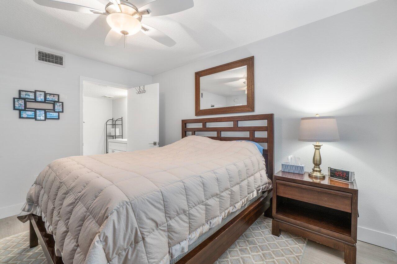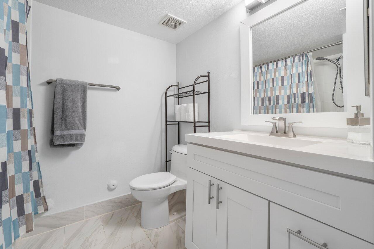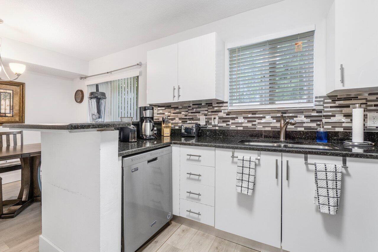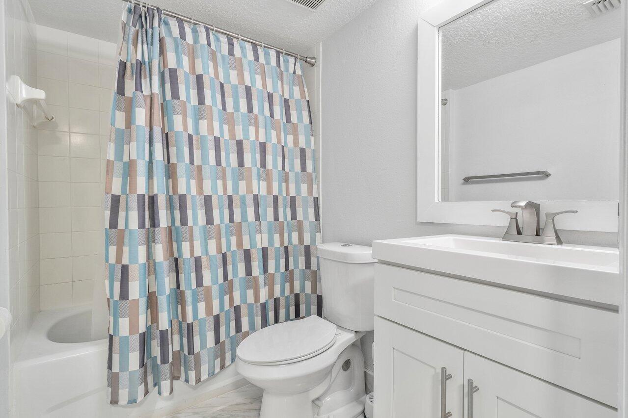 Beautiful 1st floor corner unit located in a gated community. The split floor plan with 3 bedrooms, 2 baths condo is updated with engineered wood flooring. The kitchen featuring updated white cabinets, granite countertop, tile backsplash, and stainless-steel appliances. The master bedroom with walk-in closet & updated master bathroom. The 2 bedrooms good size, 2nd bathroom updated and inside laundry with red-hot front loader washer & dryer. Newer air conditioner. This community is centrally located near Turnpike and I-95, City Place, Beaches, Restaurants. Schools, Palm Beach Outlets & Supermarkets. ALL AGES welcome, pet friendly, with community pool. NO RENTAL 1st year of ownership.Great opportunity to buy a move in ready unit with low maintenance fee!