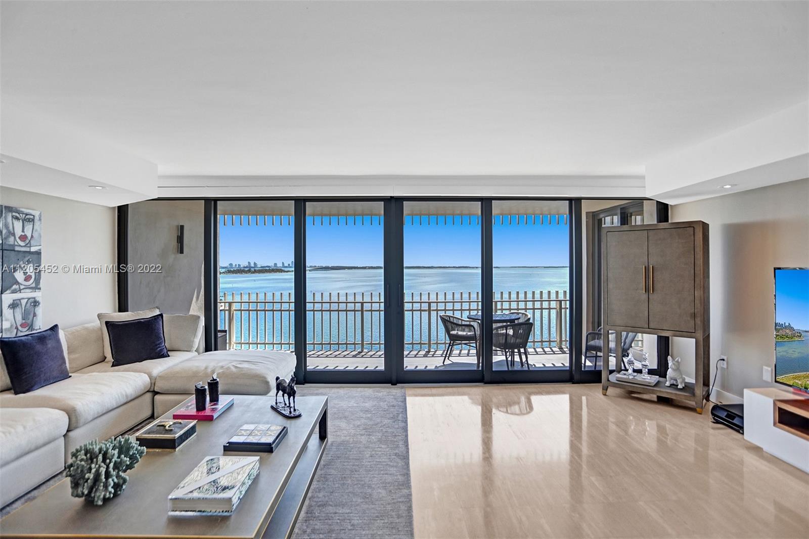 Enjoy direct ocean vistas from this exquisitely renovated 2BD/2BA. Largest two-bedroom floor plan with 1882 sq.ft. offers an open concept & wide impact doors that allow the interior to merge seamlessly with the spacious balcony. Additional features include marble floors, tile in bedrooms, recessed lighting, customized built-in wardrobe & bonus room. Grove Isle is a centrally located, 20-acre private island in Coconut Grove with marina, 24-hour security, valet, on-site management, dog park & so much more. Minutes to some of the best restaurants & shops. Please refer to Brokers Remarks. Dining Room chandelier excluded from the sale.