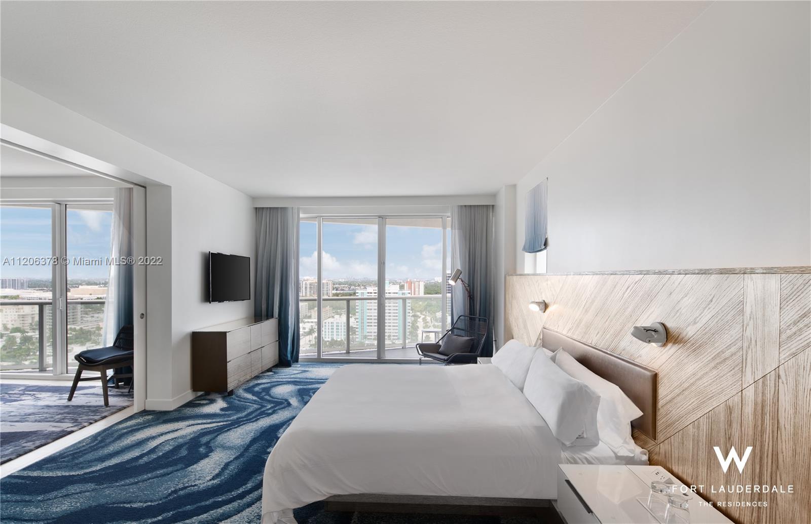 THE ONLY HIGH FLOOR 08 LINE IN THE MARKET!! This desirable fully-furnished 2 bedroom, 2 bathroom corner unit on the 18th floor offers amazing city, intercostal and ocean views. The full sized gourmet kitchen is completely upgraded with all your cooking needs and expertly crafted with Italian designed cabinetry. Full size sofa bed sleeps 2 additional people. Enjoy fabulous amenities held within the resort, TWO heated pools (1 hotel-side, 1 residence side), hot tub, cabanas with food and beverage service, fitness center, spa, and 2 on-site restaurants (Steak954, El Vez). Enjoy as a second home or investment property. GREAT INCOME PROPERTY! NO RENTAL RESTRICTIONS. You can rent on your own (on a nightly/seasonal/yearly basis) or put in the hotel rental program for stress-free management.